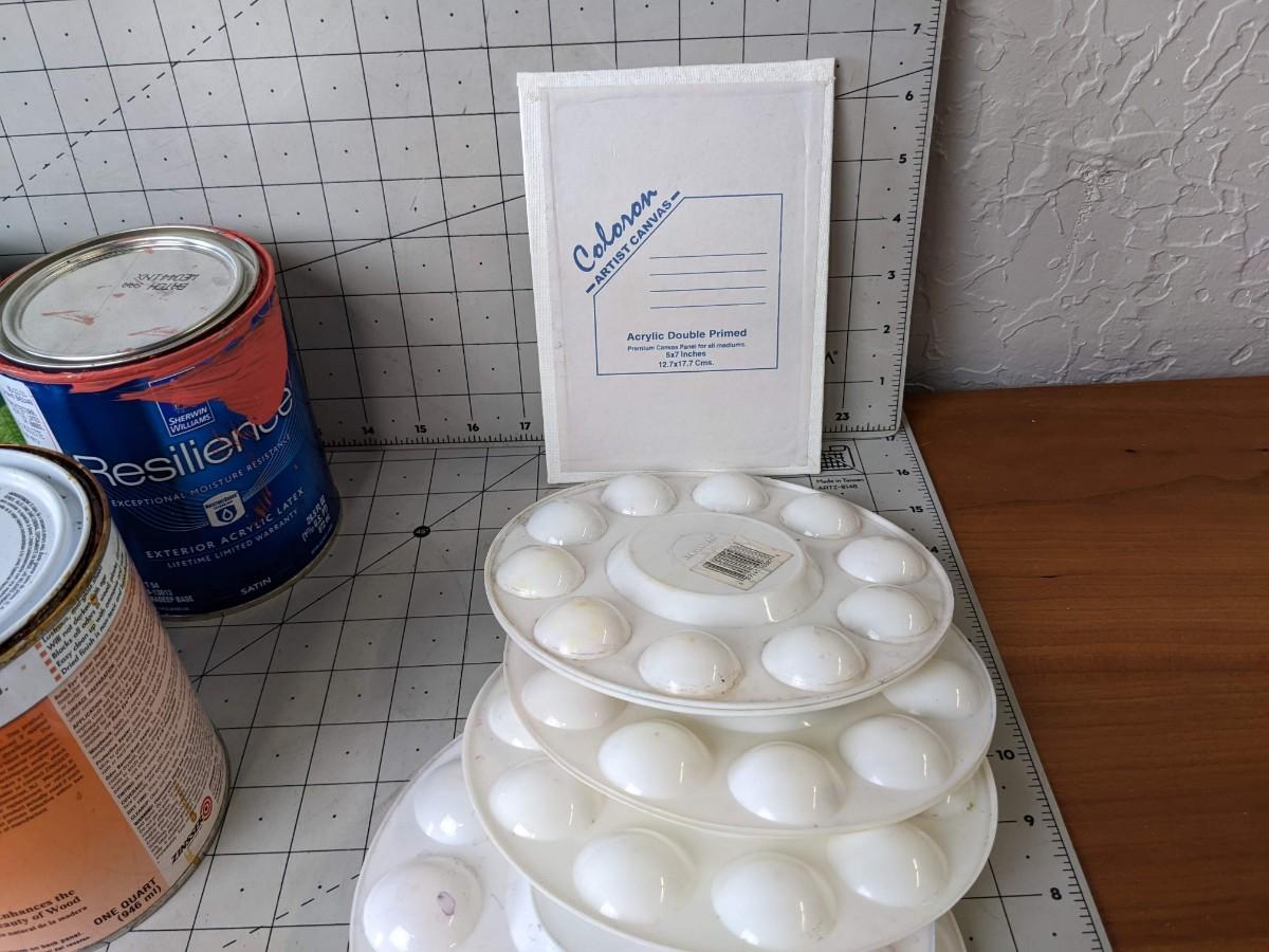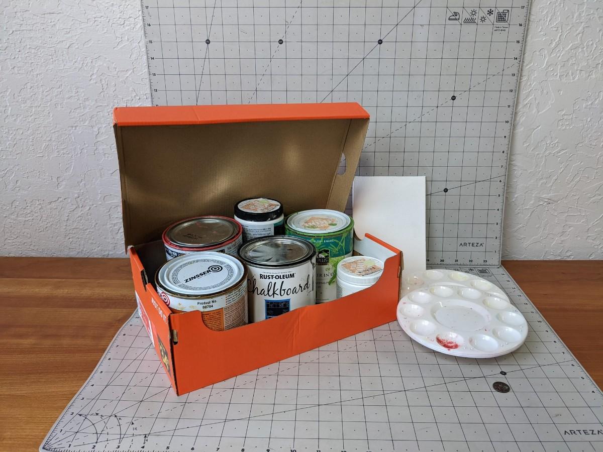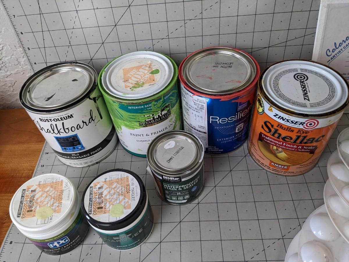 The Chalkboard & Blue Acrylic Latex are nearly empty (about 1/4 full). The smaller ones are more than 3/4 full and the other two big ones are about 1/2 full.