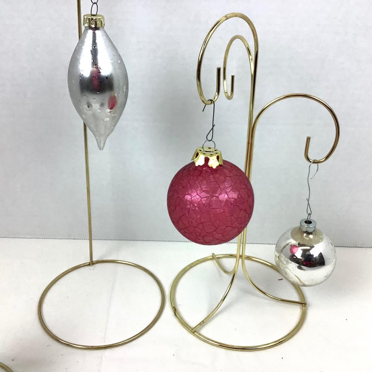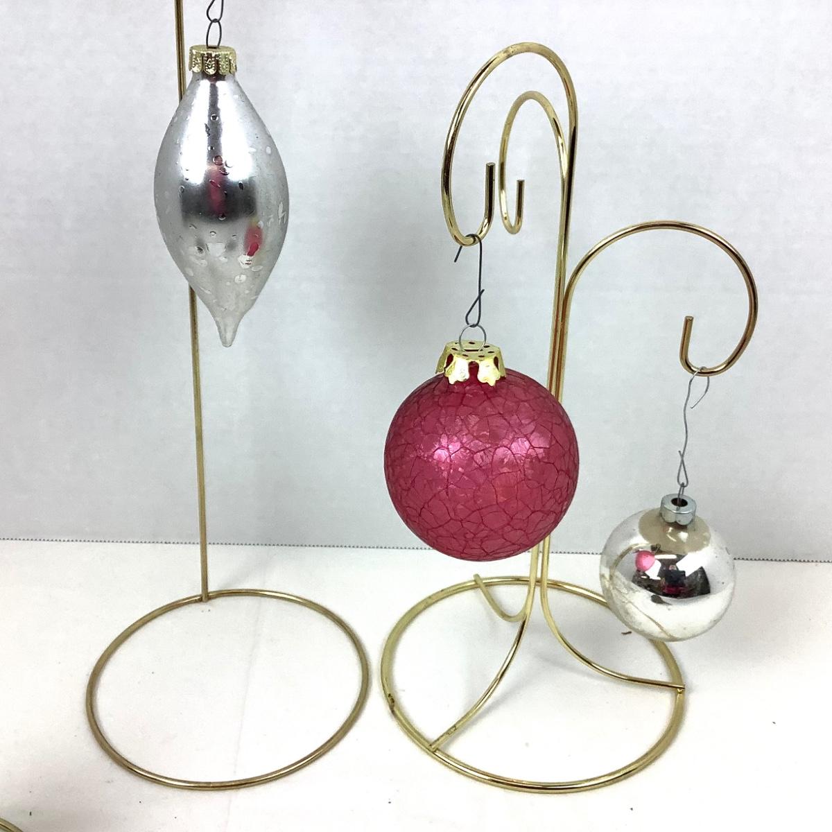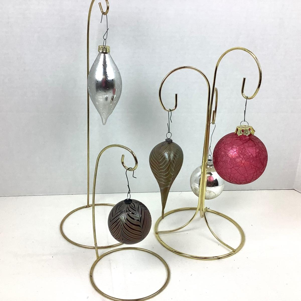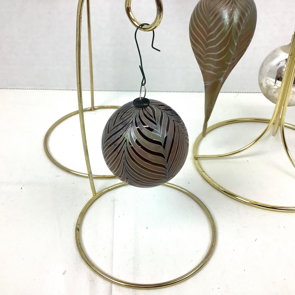 There are 5 ornaments in the lot, all are vintage and the 2 striped are artisan made and signed.