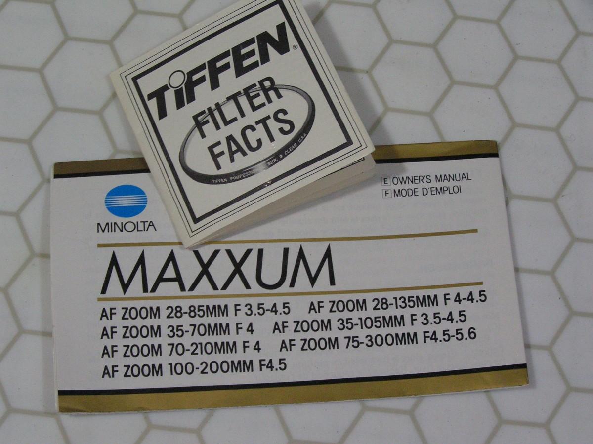 28-85mm (35mm)AF zoom lens, Minolta Maxxum ɑlpha film & digital & SONY ɑlpha digital “A”mount w/macro, f:3.5-4.5 (22). Near mint- condition with only barely discernible wear marks, Outstanding compact size (3-3/8” long), light weight (17.94oz) all purpose lens. From wide angel for landscapes and close encounters to short telephoto for portraits and close-ups plus a true macro mode as close as 9.6” @ 0.25x magnification. Features 13 multi-coated lens elements in 10 groups, all metal mount and metal body. Super sharp clean clear glass, NO scratches, NO fog, NO fungus. Comes with OEM clip-on “flip to store” lens shade, protective Tiffen Haze-1 clear lens filter and both OEM lens caps. Tested OK. Made in Japan. SN: 33202550