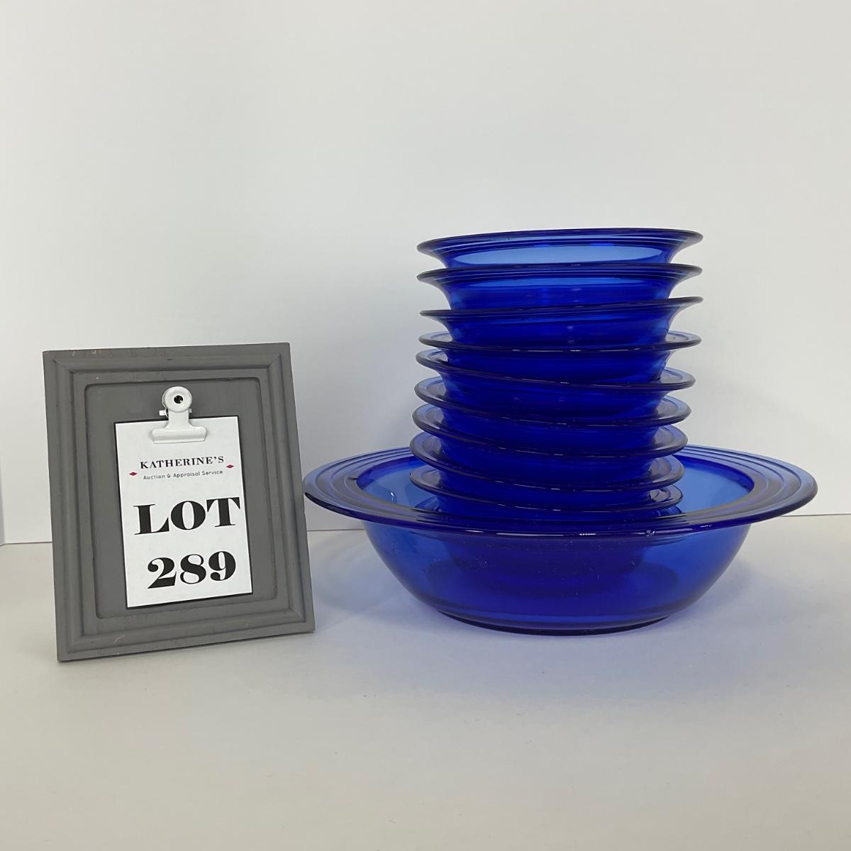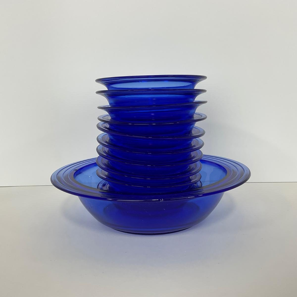 Eleven pieces of Moderntone Hazel Atlas Glass Co. (1934-1942) including ten small bowls and one large bowls. These pieces do have some damage and wear. Please see photos for details and condition. ::: Shipping is available on this lot. If you require shipping you must let us know at the close of the auction. We will coordinate with you after the item has been won. Shipping fees will include insurance up to or exceeding the value of all items being mailed. If you have any questions regarding this lot please contact the auctioneer either via this website, by direct email or by phone. PICK UP TIMES and other important information can be found in the TERMS and DESCRIPTION of the auction. Please take a look for pertinent information. Thanks!