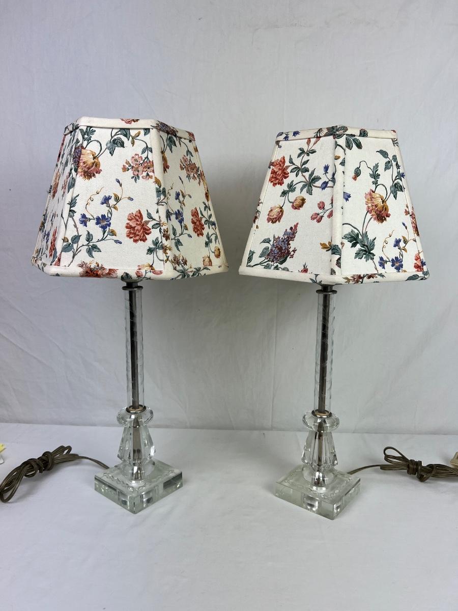 289  Pair Vintage Glass Dress Table Lamps