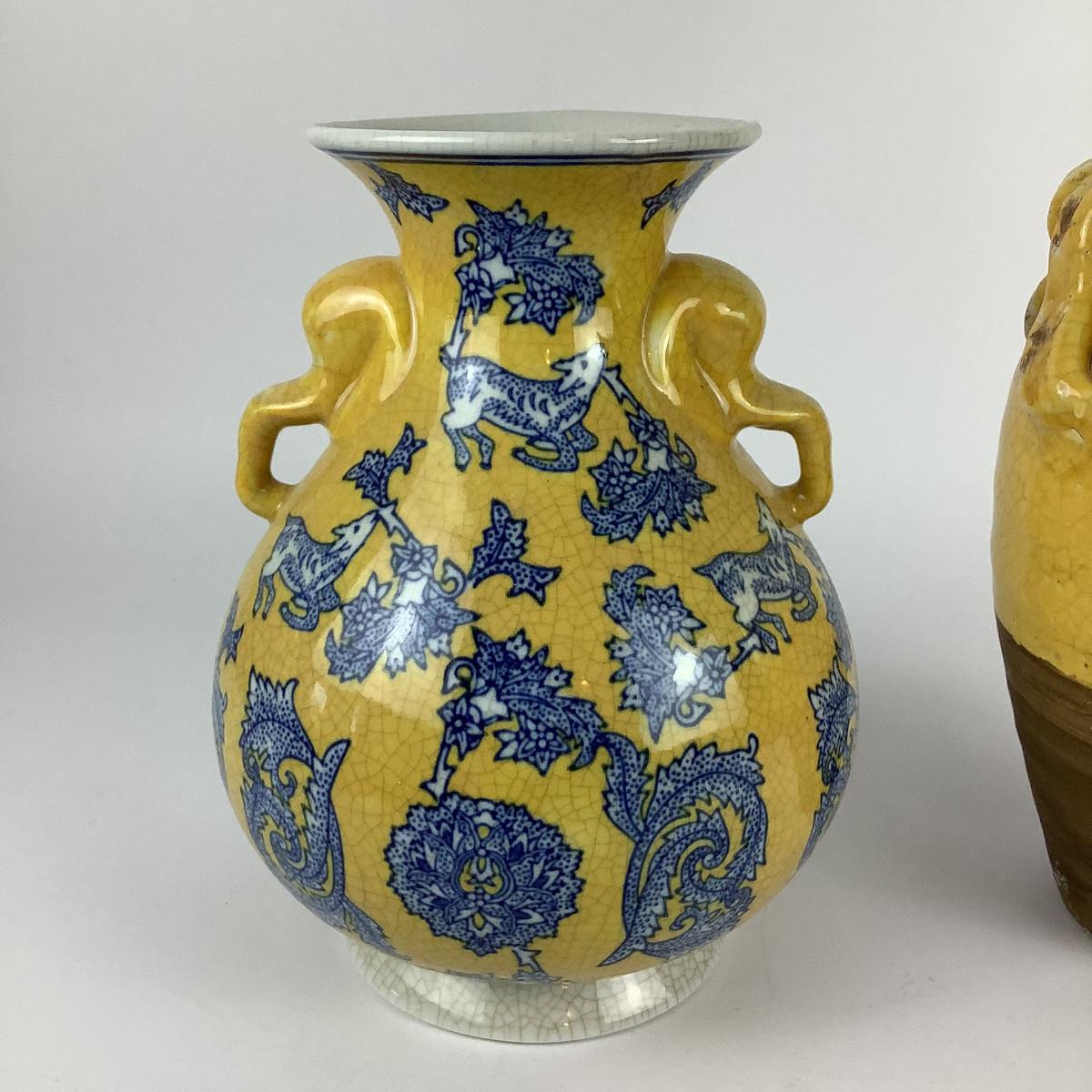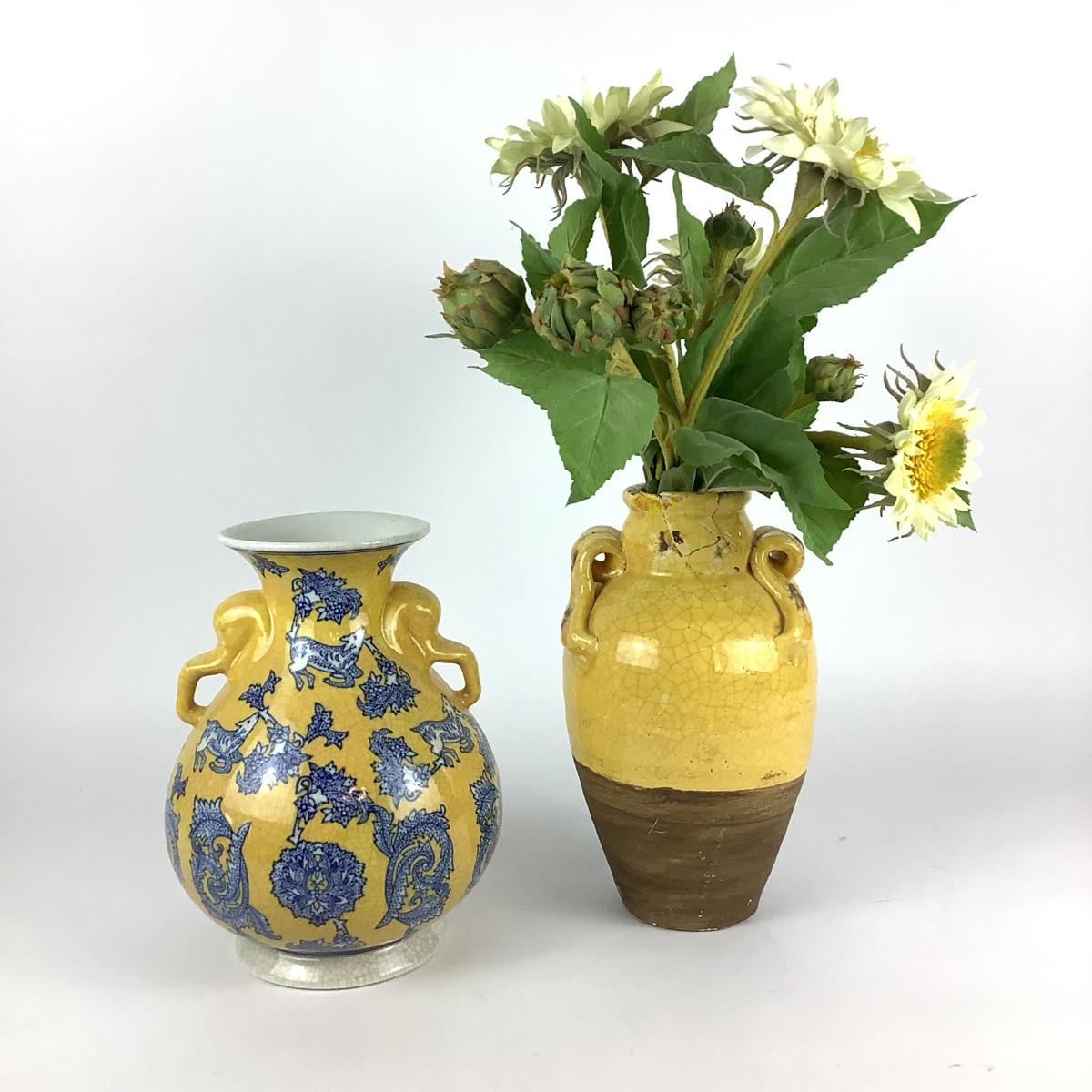 289 Yellow & Blue Chinese Vase With Yellow Flower Pot