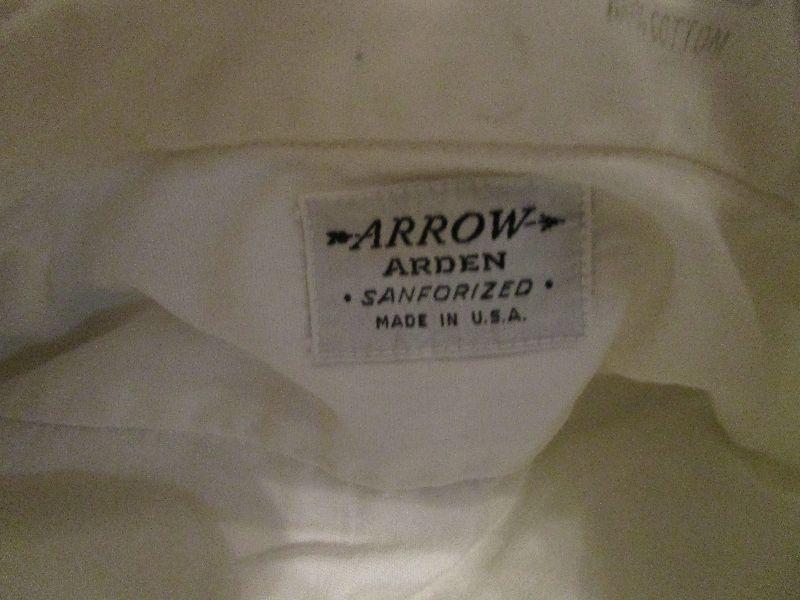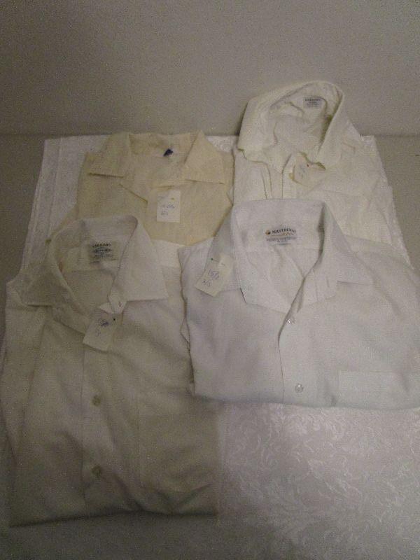 1-Sears cream color 15-15.5 short sleeve, 1- Aristocrat white 15.5 short sleeve, 1-Arrow cream color 15.5x33, 1- Arrow white 15.5x33