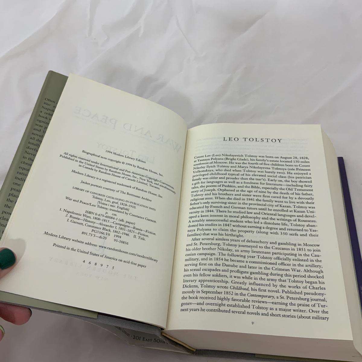 From the Estate of Peter Radovanovich: War and Peace by Leo Tolstoy, hardcover copy, copyright 1994. Book is in excellent used condition. Please see photos for details and condition. ::: Shipping is available on this lot. If you require shipping you must let us know at the close of the auction. We will coordinate with you after the item has been won. Shipping fees will include insurance up to or exceeding the value of all items being mailed. If you have any questions regarding this lot please contact the auctioneer either via this website, by direct email or by phone. PICK UP TIMES and other important information can be found in the TERMS and DESCRIPTION of the auction. Please take a look for pertinent information. Thanks!