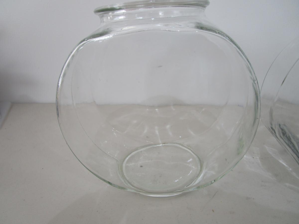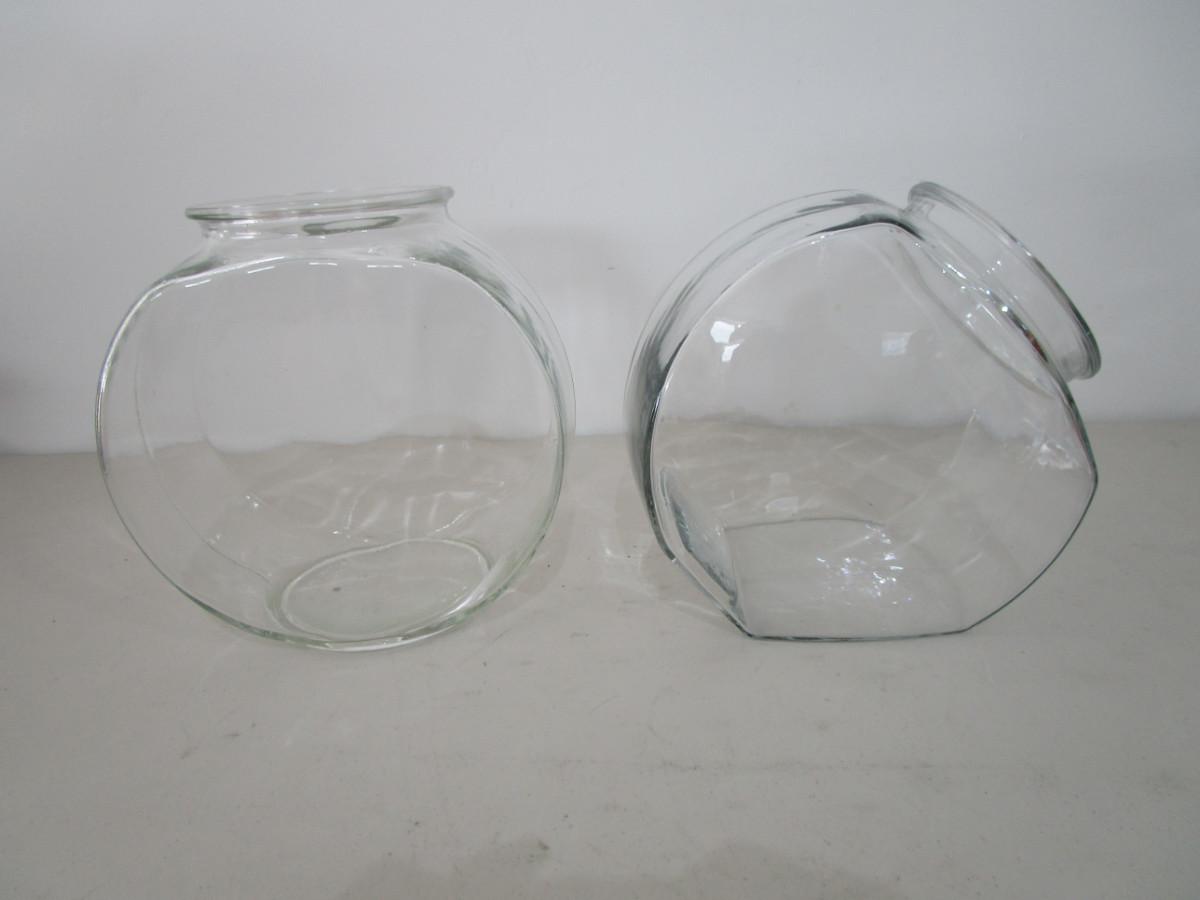 Fish bowl 8.5"x8.5"x 5; Old time candy or cookie jar 8.5"x8"x5.5