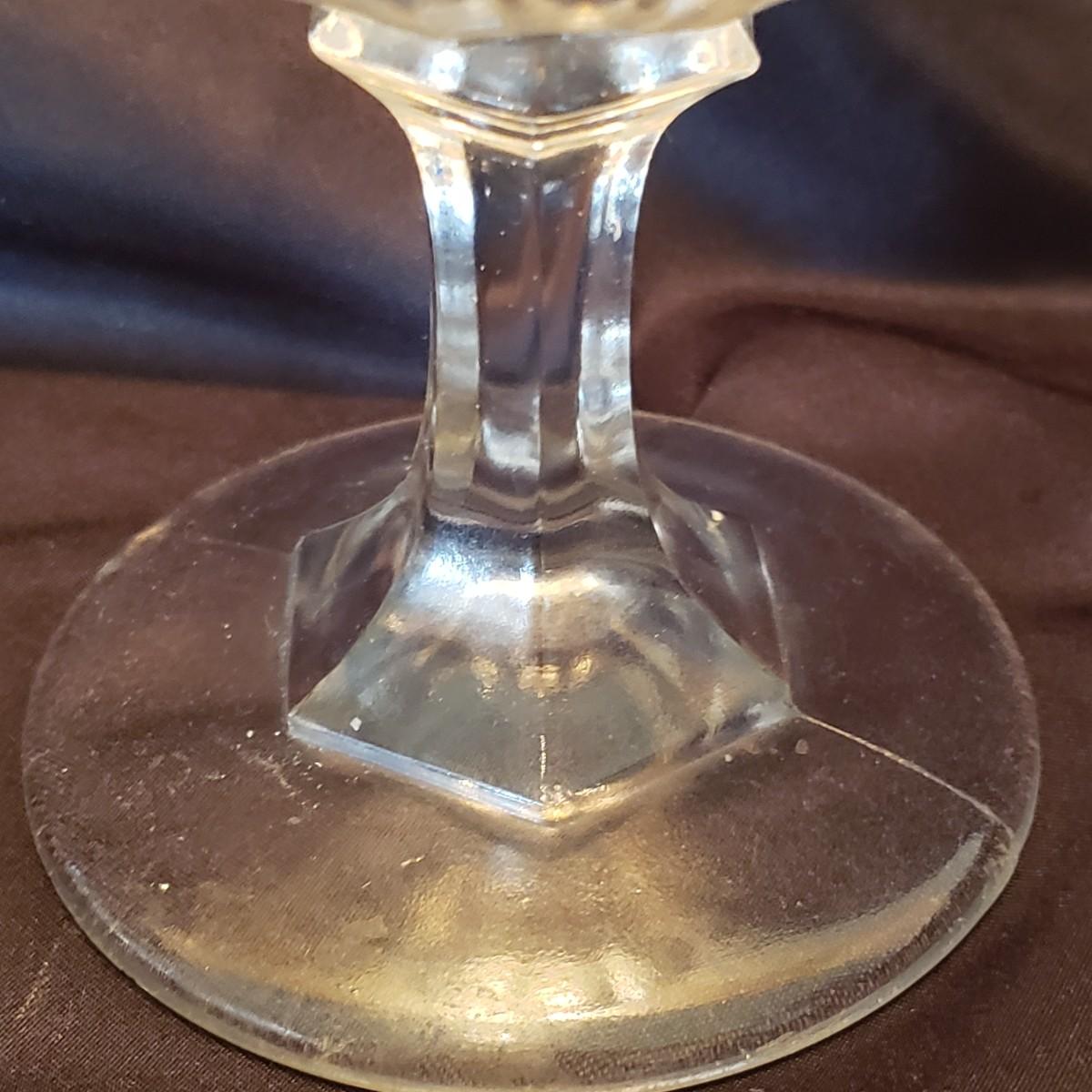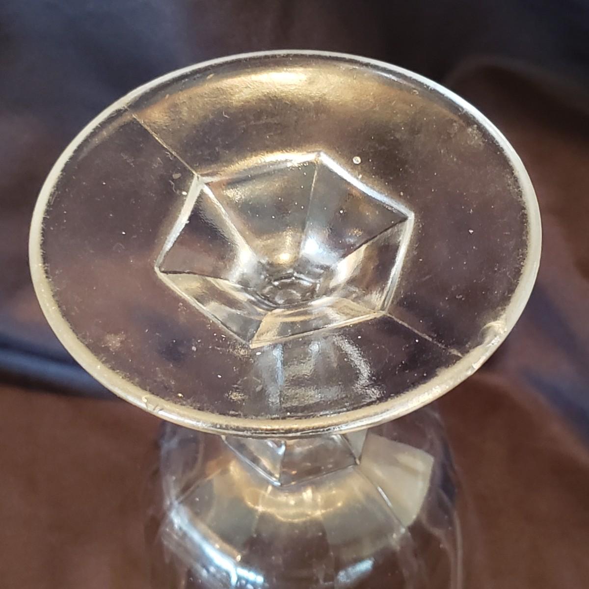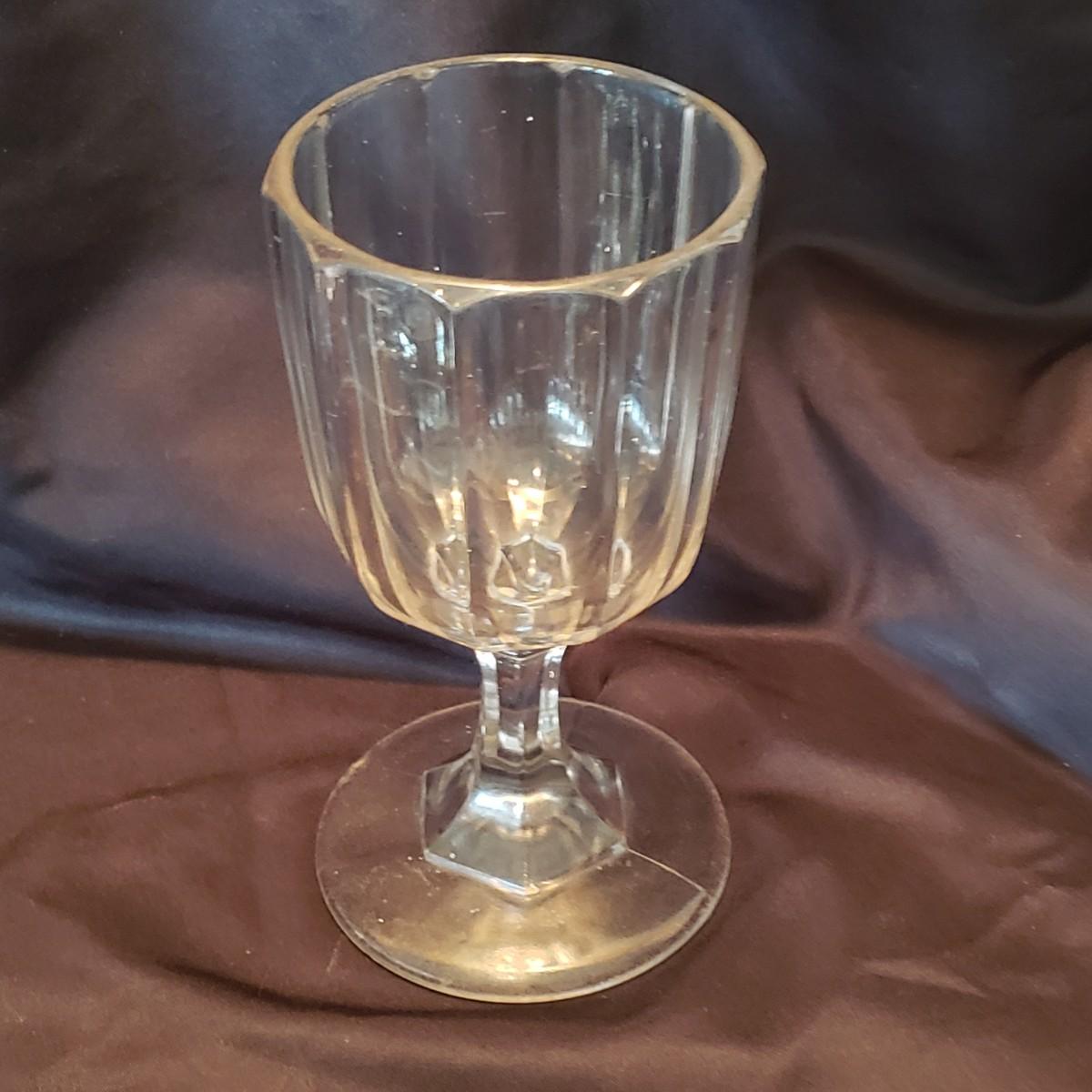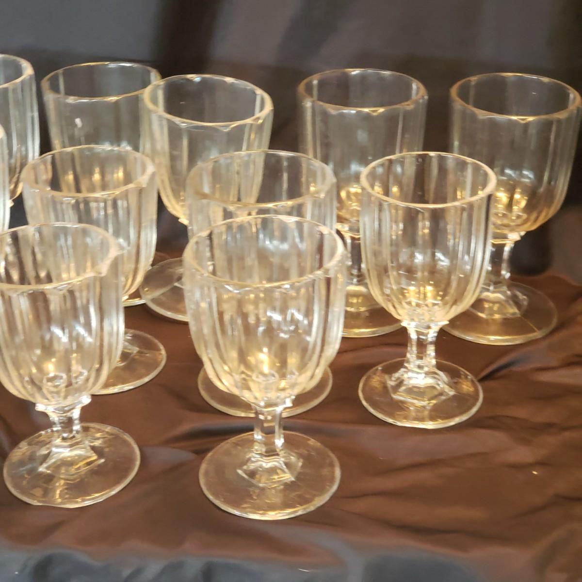 This large lot of 29 glasses has 4 different sizes. The style is Huber Flint, but there are no marks to be sure of the manufacturer. There are two small glasses measuring 2.5" x 5" H. The next two glasses in size measure approximately 3" x 5" H. The remaining 25 glasses measure approximately 3" x 6" H.