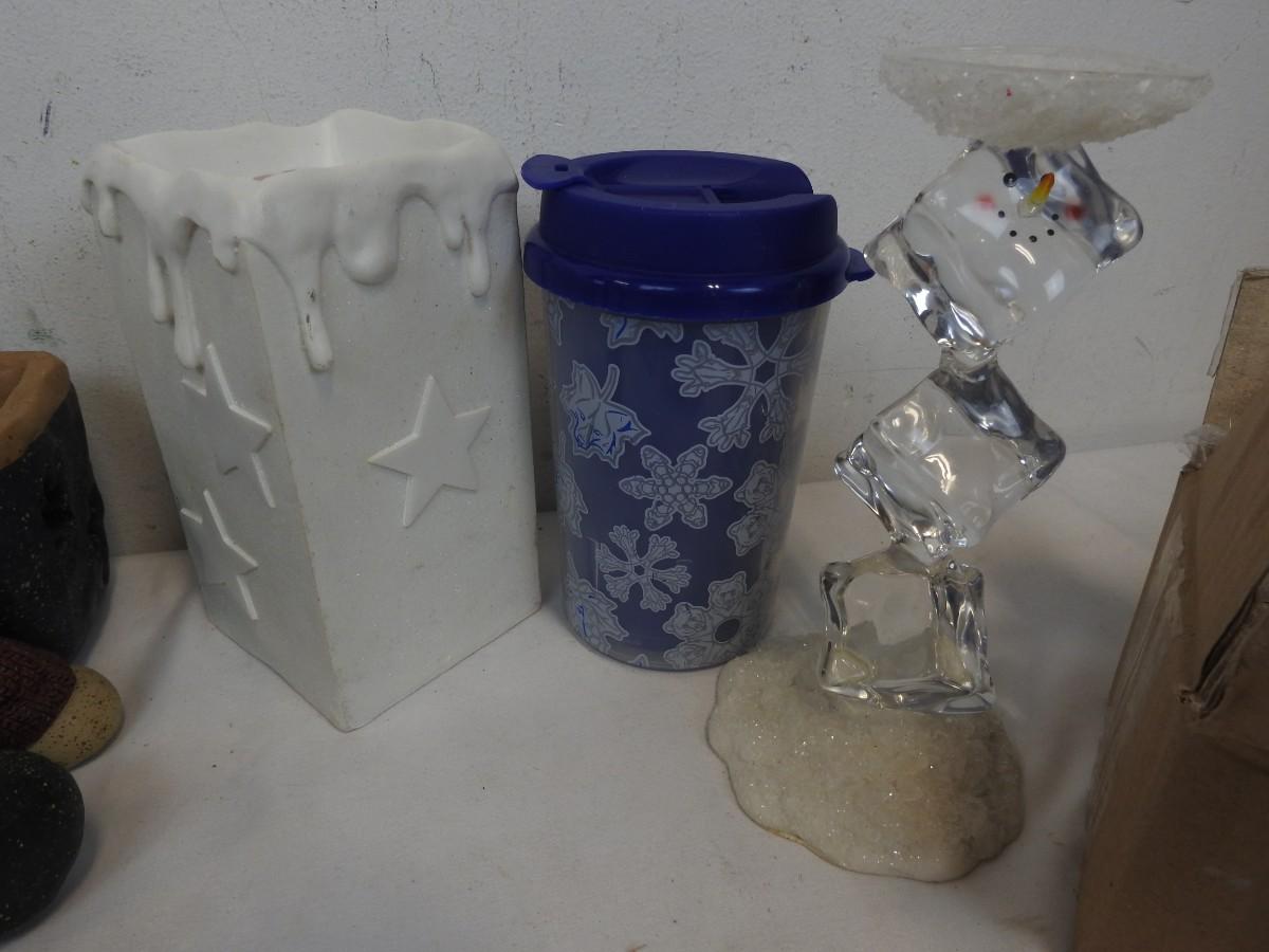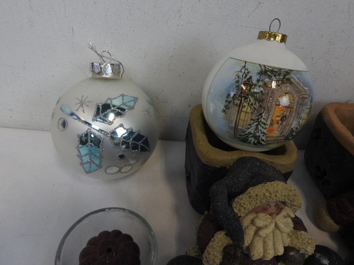 29 pc Christmas Decor Lot: Ornaments, Candle Holders, Snowflake Mug