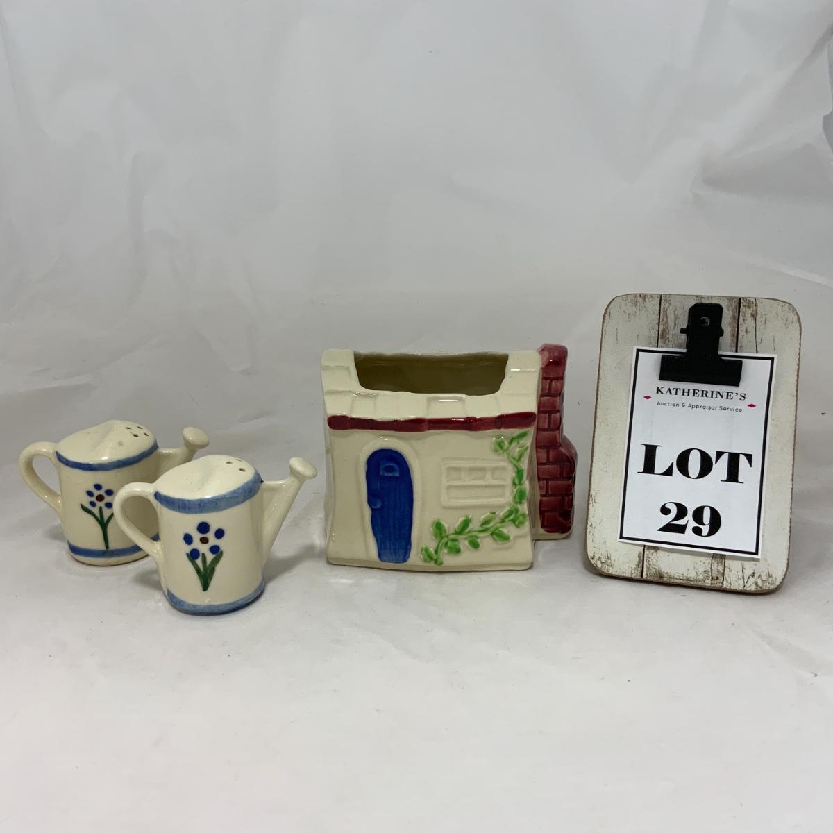 From the Estate of Peter and Alice Radovanovich: Nice Shawnee Pottery House Planter and set of Sprinkler Can Salt and Pepper Shakers. All fine pieces of pottery. No cracks or chips noted. Please see photos for details and condition. ::: Shipping is available on this lot. If you require shipping you must let us know at the close of the auction. We will coordinate with you after the item has been won. Shipping fees will include insurance up to or exceeding the value of all items being mailed. If you have any questions regarding this lot please contact the auctioneer either via this website, by direct email or by phone. PICK UP TIMES and other important information can be found in the TERMS and DESCRIPTION of the auction. Please take a look for pertinent information. Thanks!
