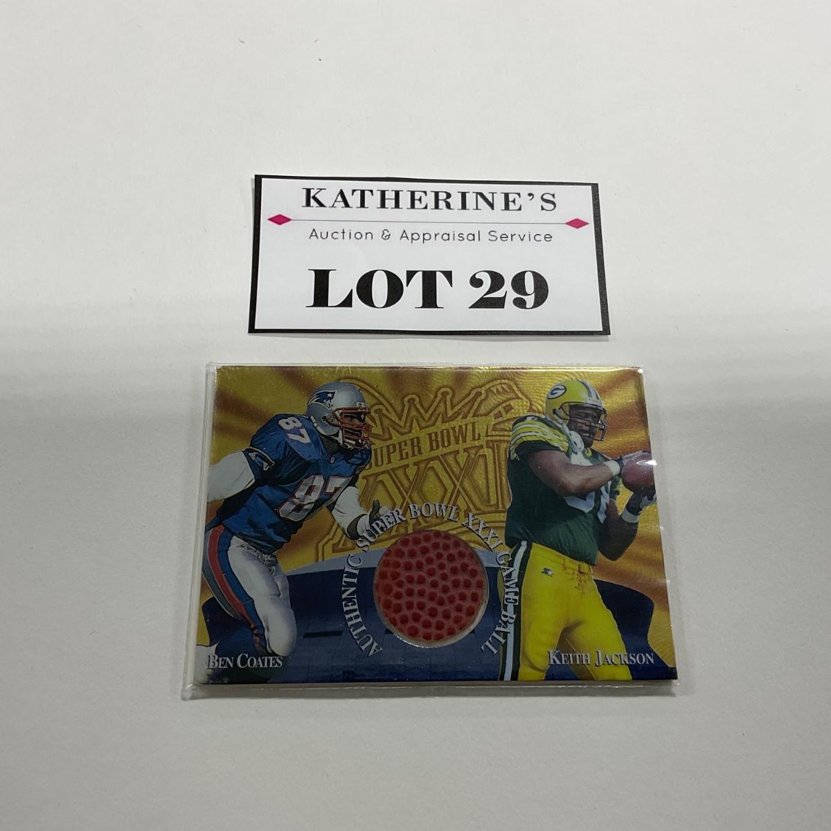 -29- SPORTS | Ben Coates & Keith Jackson Super Bowl XXXI 1997 Game Ball Card