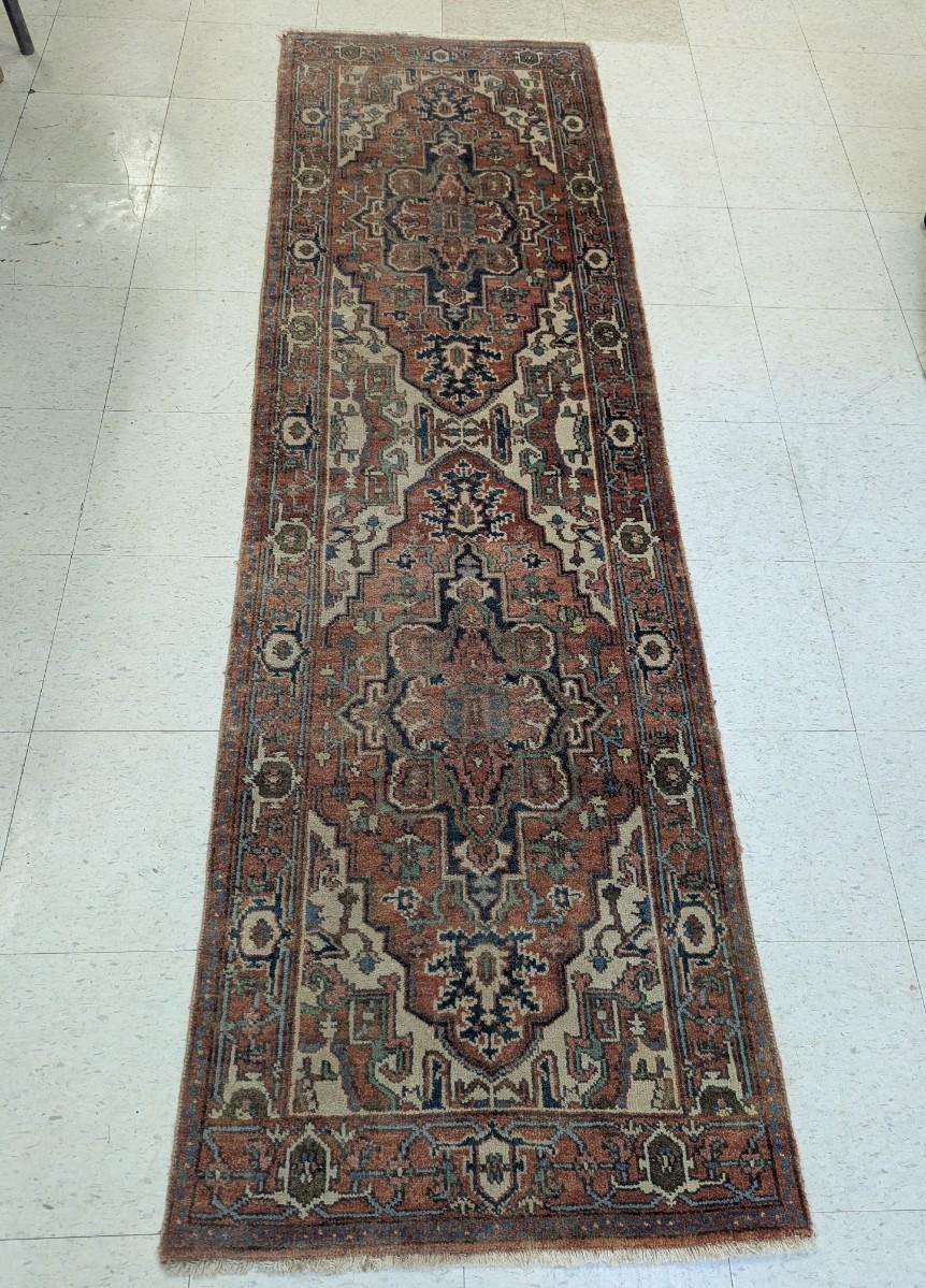 29" x 96 1/2" Vintage Runner. Shipping is by third party only such as UPS Store. Auction firm will make sure item is available for buyer's shipper of choice to pick item up and do all packing and shipping for the buyer. Buyer agrees to pay all fees associated with the shipping of this item and to make arrangements for its pick up from our auction house.