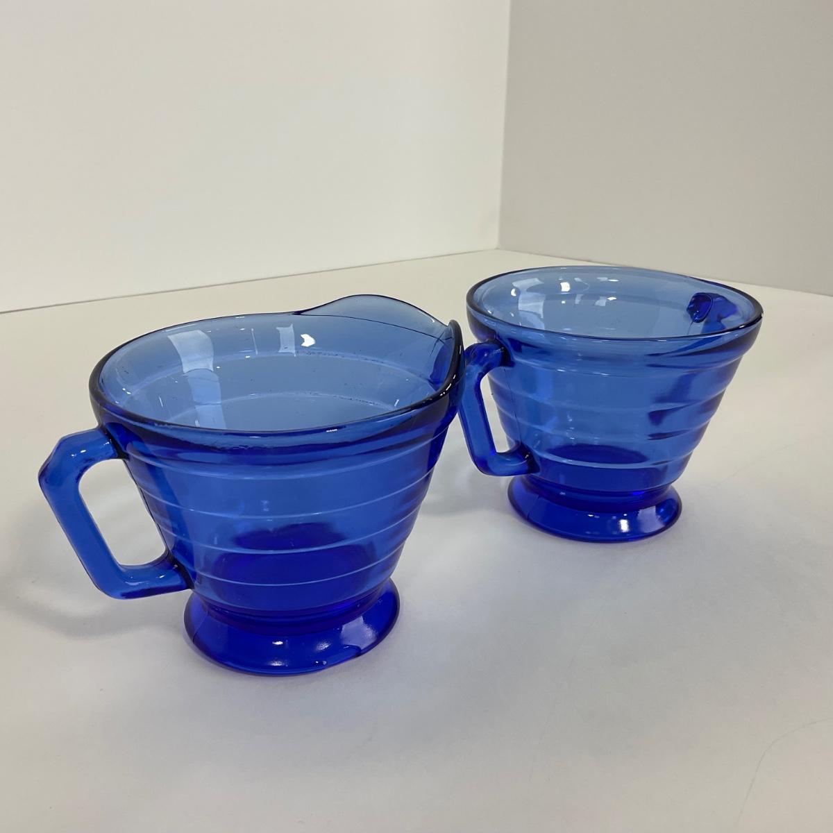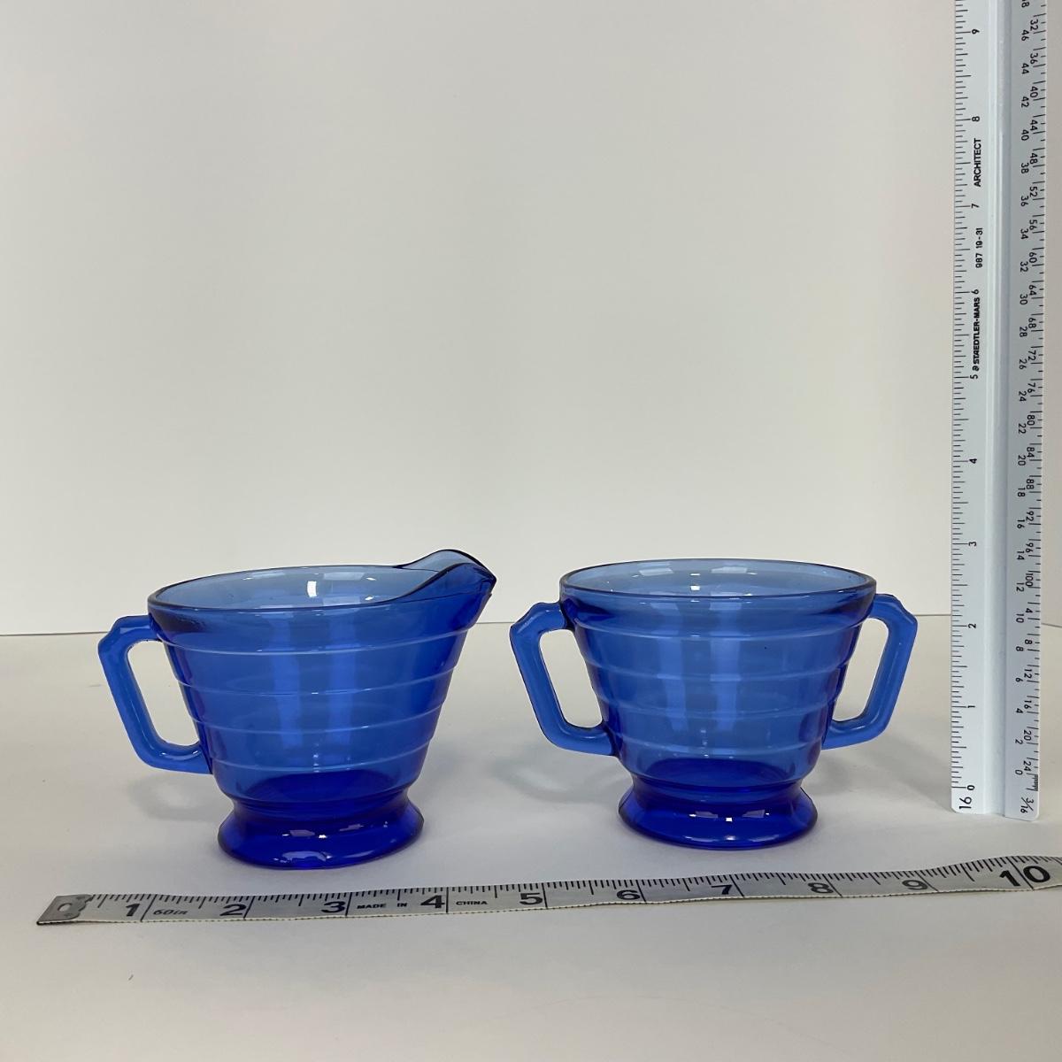 Three pieces of Moderntone Hazel Atlas Glass Co. (1934-1942) including one creamer, one sugar, and one platter. These pieces do have some chips and damage. Please see photos for details and condition. ::: Shipping is available on this lot. If you require shipping you must let us know at the close of the auction. We will coordinate with you after the item has been won. Shipping fees will include insurance up to or exceeding the value of all items being mailed. If you have any questions regarding this lot please contact the auctioneer either via this website, by direct email or by phone. PICK UP TIMES and other important information can be found in the TERMS and DESCRIPTION of the auction. Please take a look for pertinent information. Thanks!