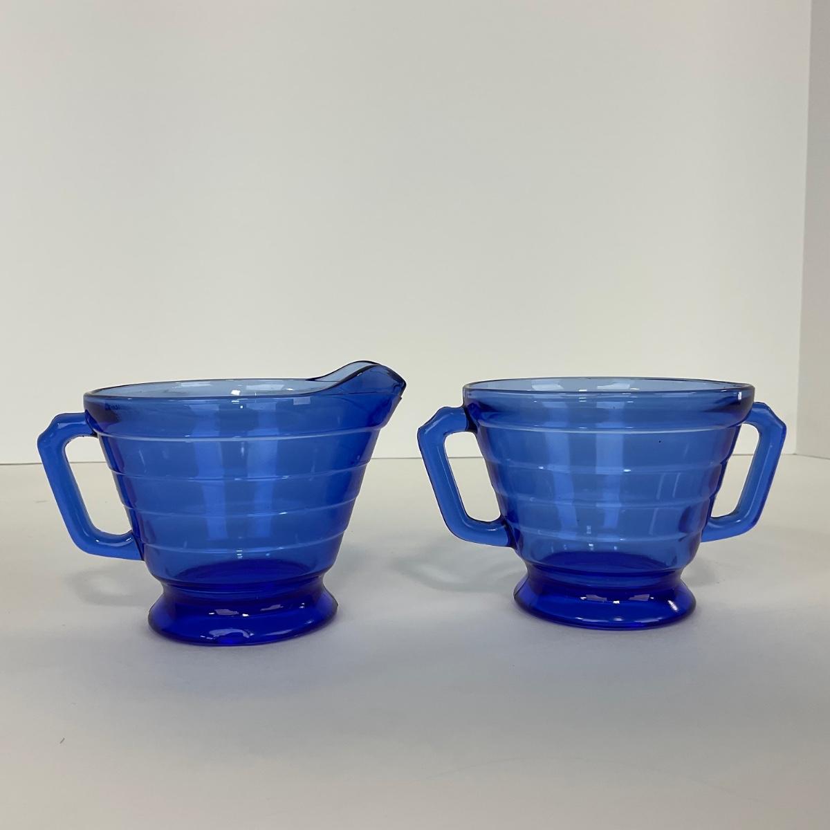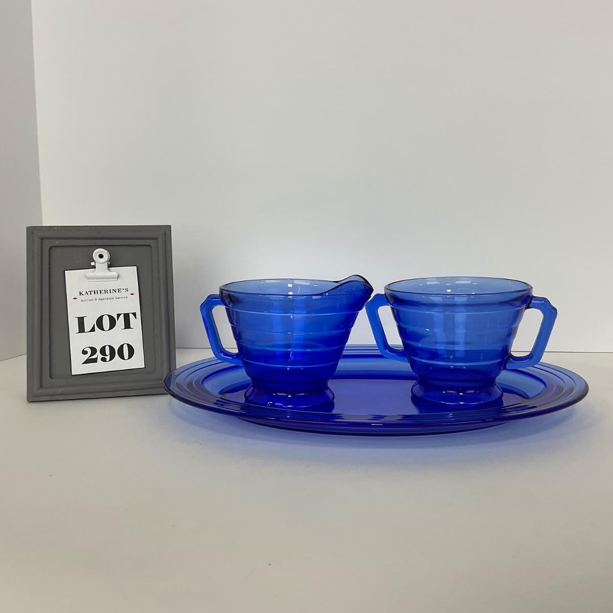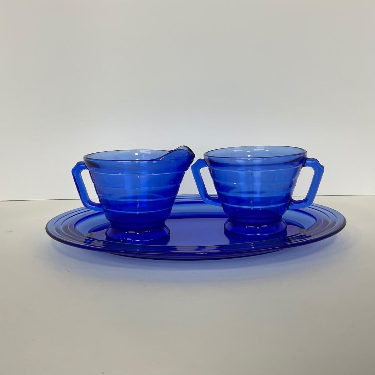 -290- GLASSWARE | Moderntone Hazel Atlas Glass Co. | Creamer, Sugar, & Platter