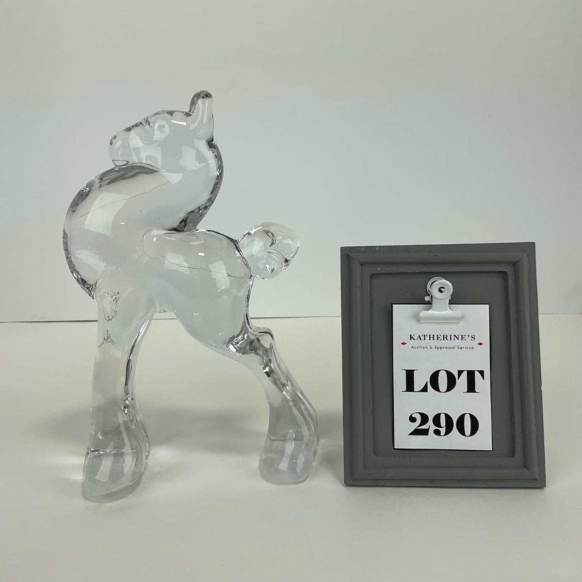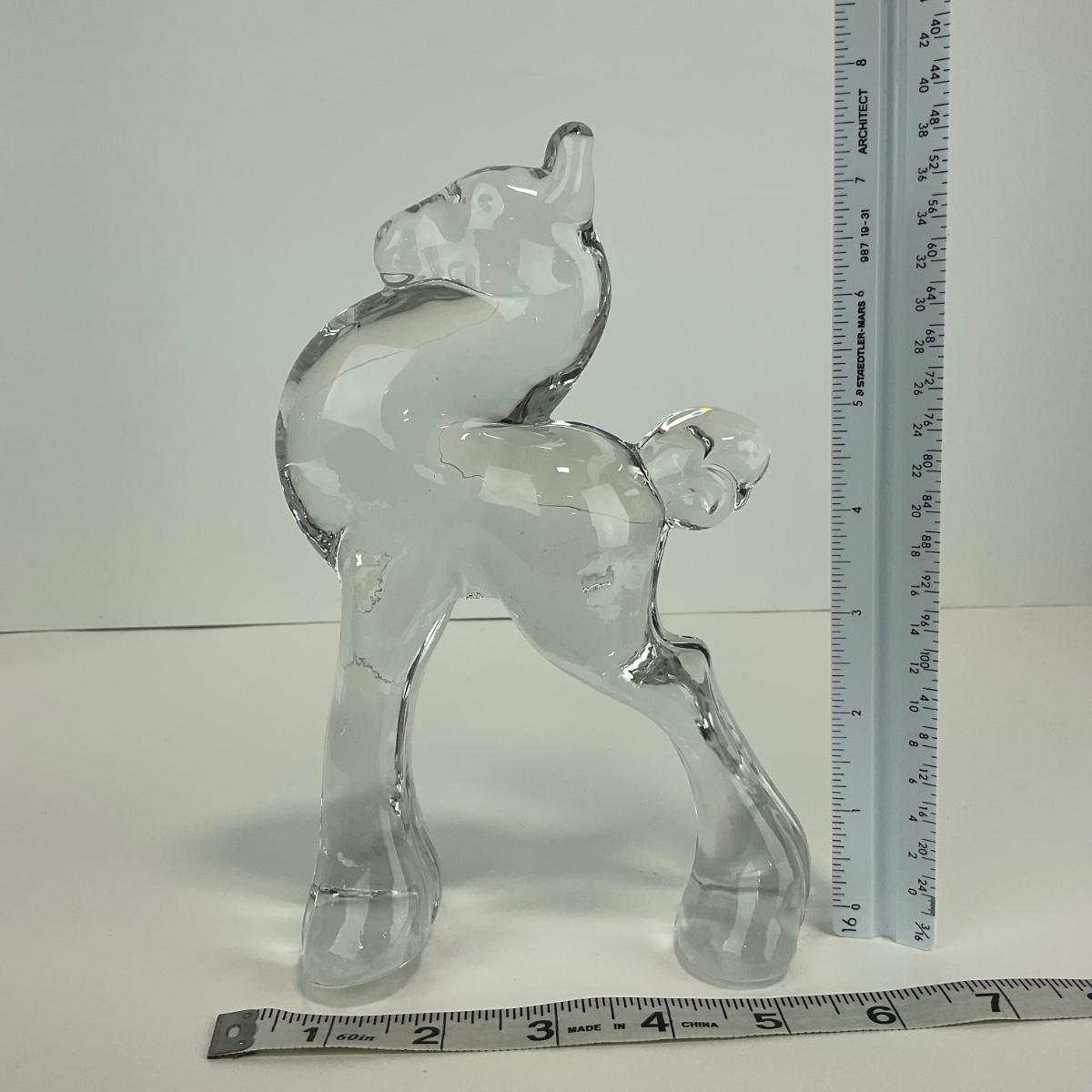One marked clear glass Heisey by Imperial Filly horse figure. This piece has no damage, and appears to be in great shape with no visable chips, cracks, or broken pieces. Please see photos for details and condition. Any condition statement is given as a courtesy to a client, is an opinion, and should not be treated as a statement of fact. Reference to condition written, oral or within a condition report shall not be regarded as a full account of condition and may not include all defects, alterations, or restorations. Absence of a condition report does not imply a lot is flawless or lacking imperfections or damage. Katherine’s Auction & Appraisal Service shall have no responsibility for any error or omission. Returns shall not be accepted on the basis of condition. ::: Shipping is available on this lot. If you require shipping you must let us know at the close of the auction. We will coordinate with you after the item has been won. Shipping fees will include insurance up to or exceeding the value of all items being mailed. If you have any questions regarding this lot please contact the auctioneer either via this website, by direct email or by phone. PICK UP TIMES and other important information can be found in the TERMS and DESCRIPTION of the auction. Please take a look for pertinent information. Thanks!