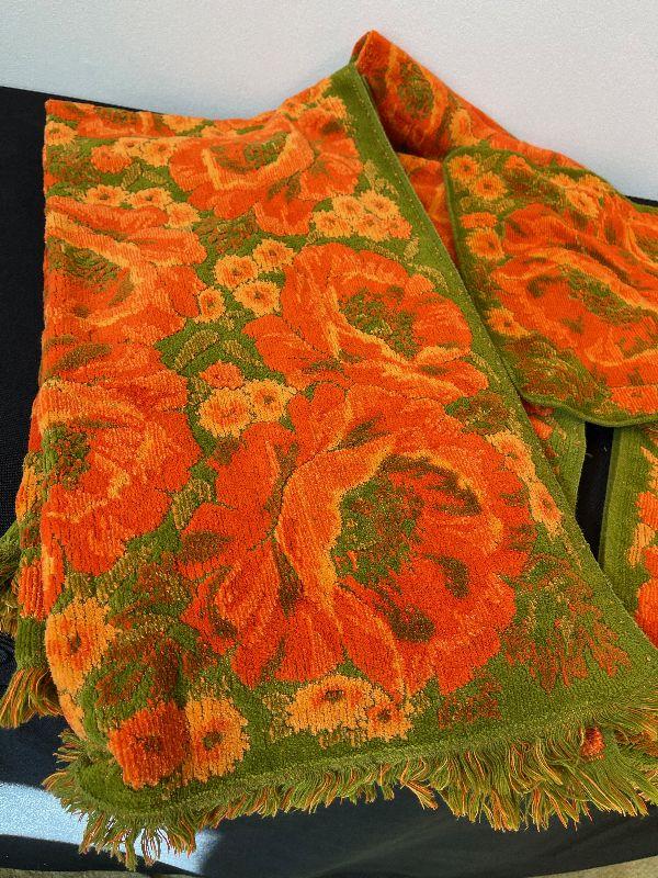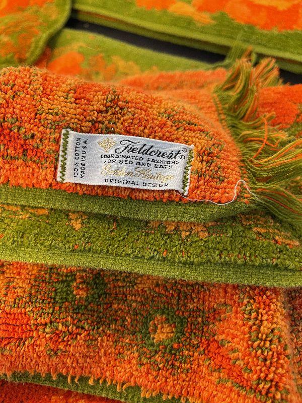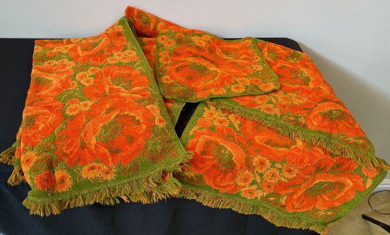 #291 (5) Vintage Towels; ORANGE 2 Bath, 2 Hand and 2 wash