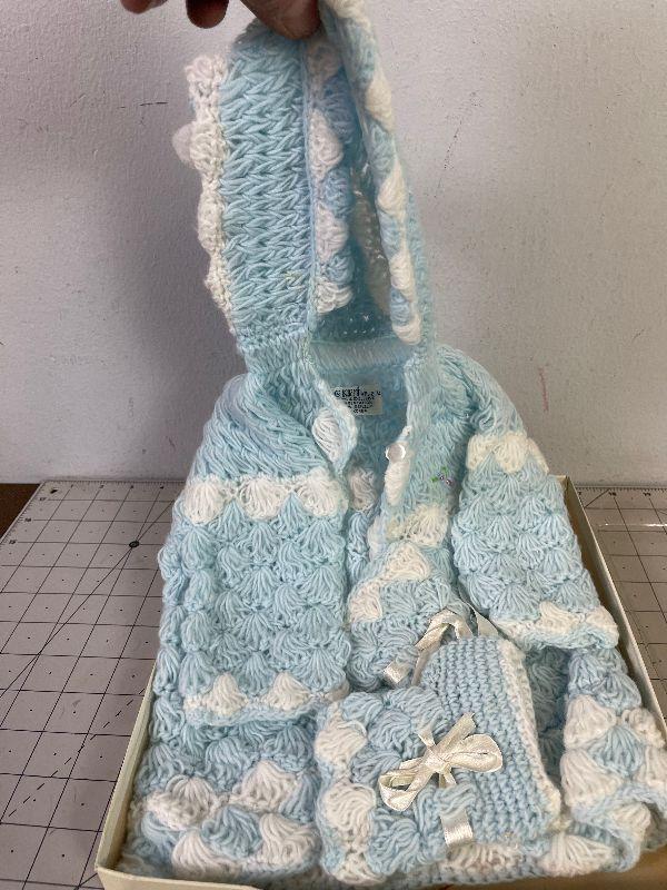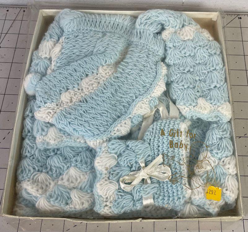 Little Blue Booty's with Crocheted Robe. Probably New Born Size. 1960's.