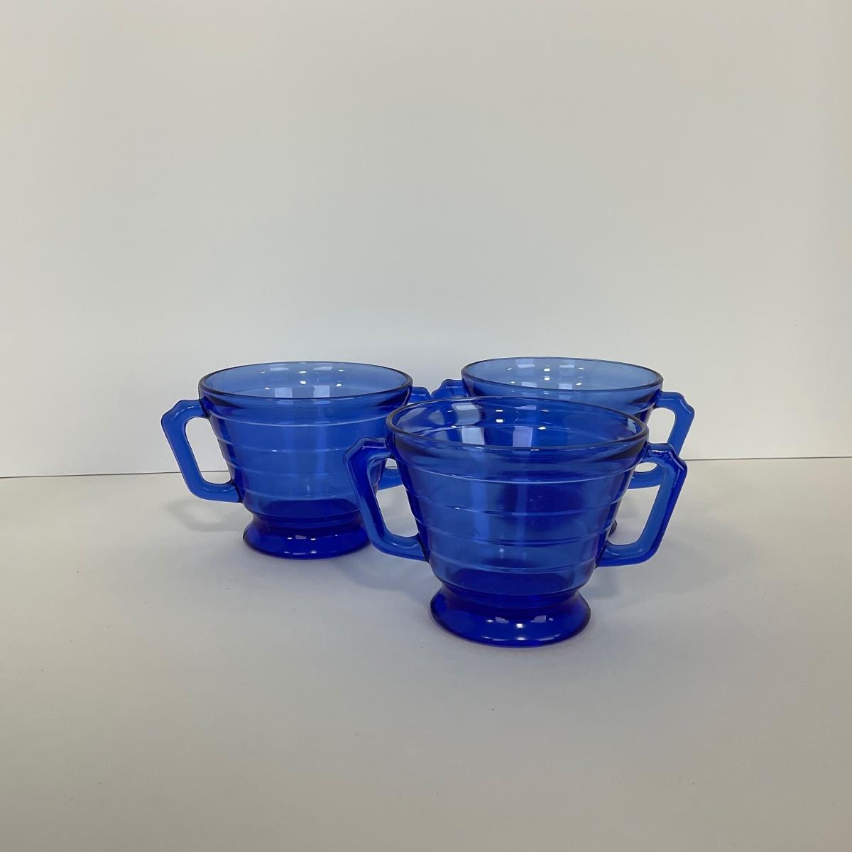 Three pieces of Moderntone Hazel Atlas Glass Co. (1934-1942) sugar dishes. Please see photos for details and condition. ::: Shipping is available on this lot. If you require shipping you must let us know at the close of the auction. We will coordinate with you after the item has been won. Shipping fees will include insurance up to or exceeding the value of all items being mailed. If you have any questions regarding this lot please contact the auctioneer either via this website, by direct email or by phone. PICK UP TIMES and other important information can be found in the TERMS and DESCRIPTION of the auction. Please take a look for pertinent information. Thanks!