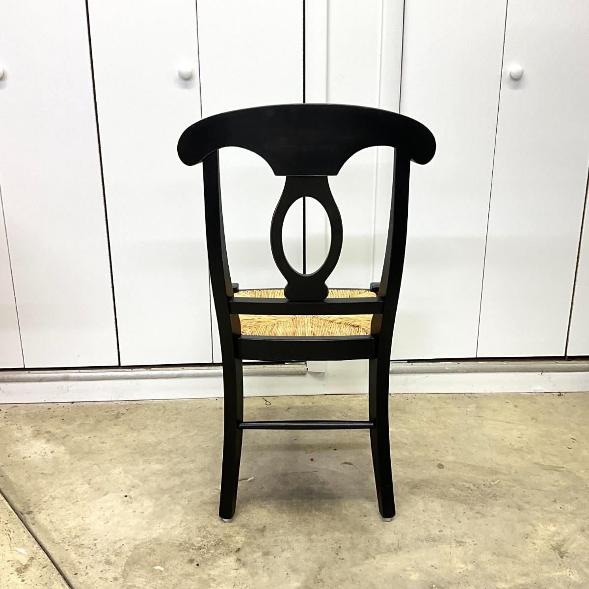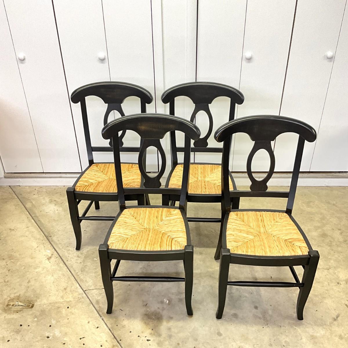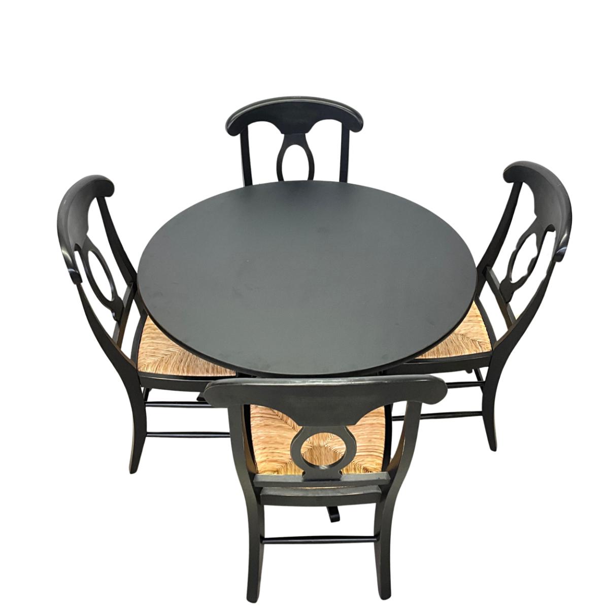292 Ballard Design Exclusive Rubbed Black Pavlo Table with Set of 4 Straw Seat Chairs