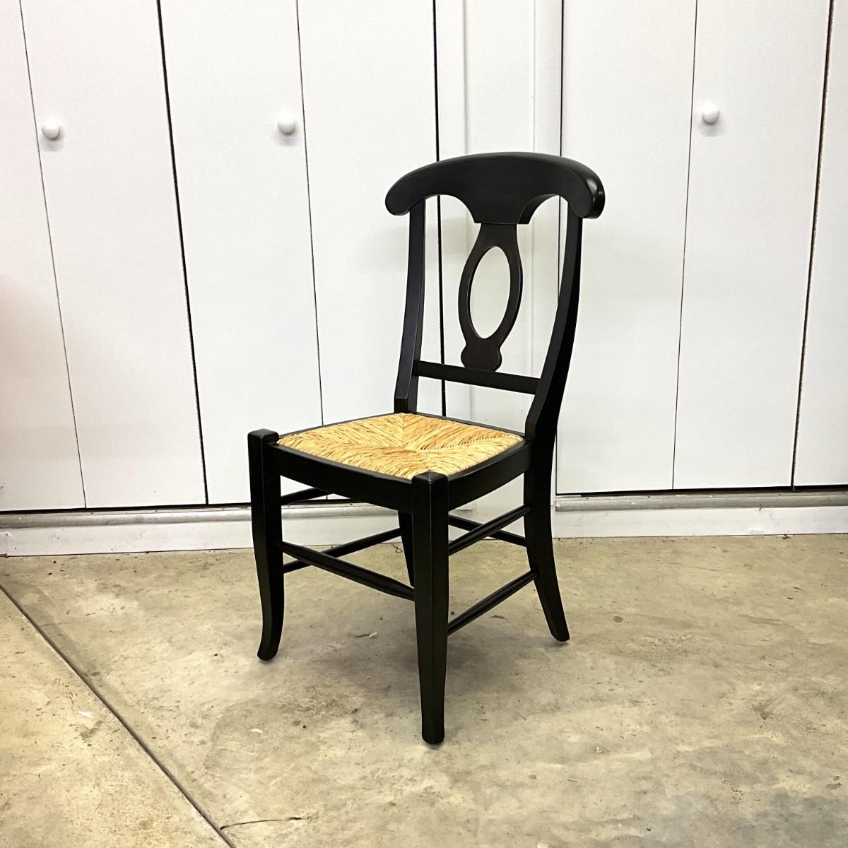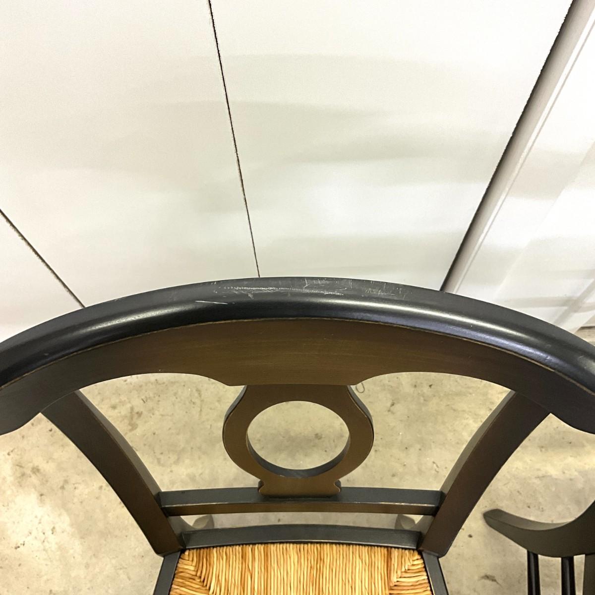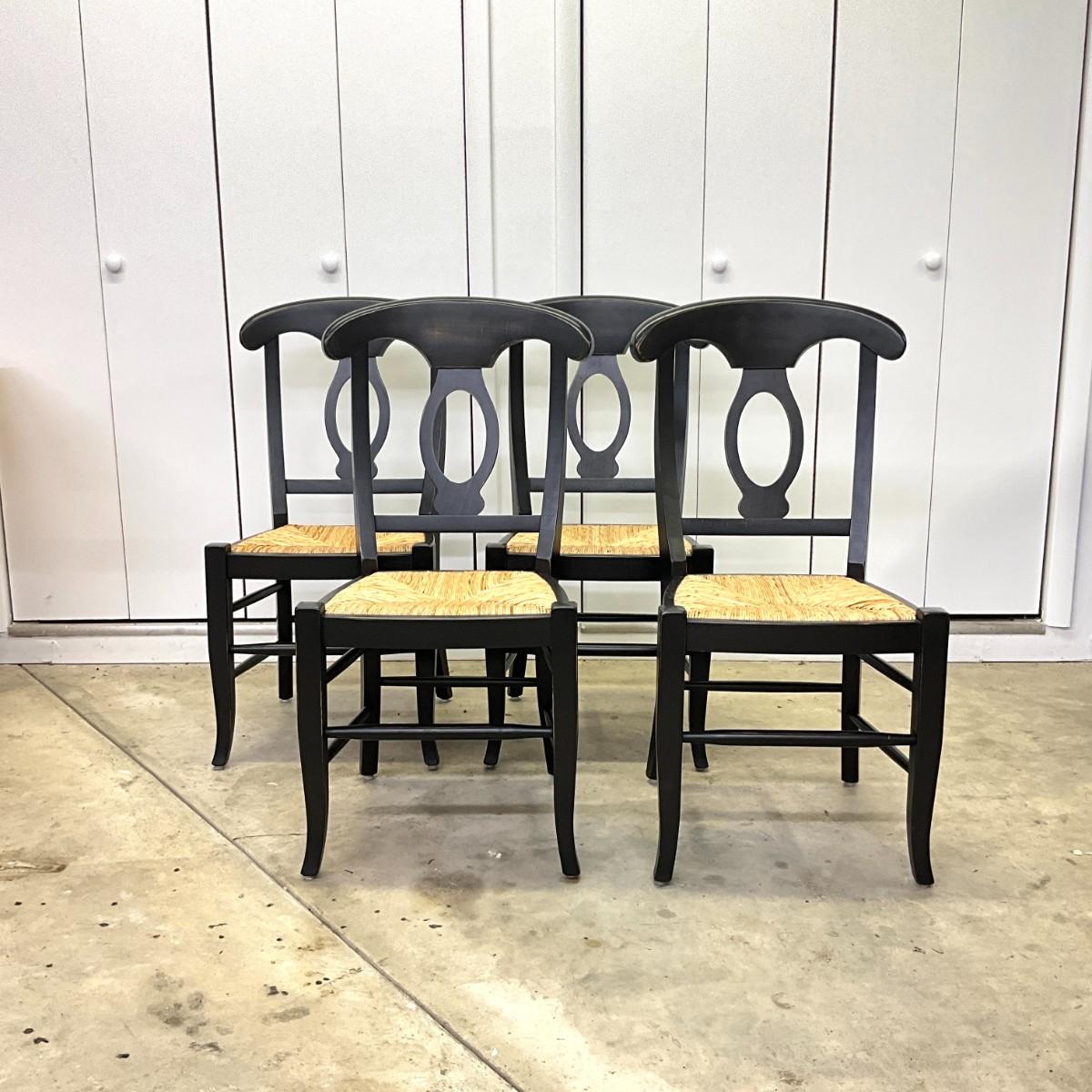 292 Ballard Design Exclusive Rubbed Black Pavlo Table with Set of 4 Straw Seat Chairs
