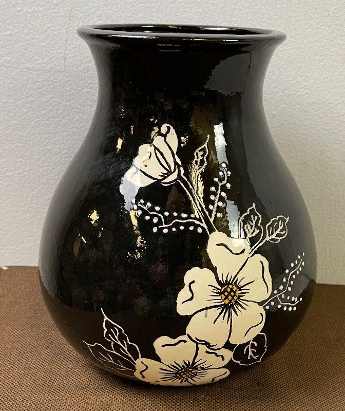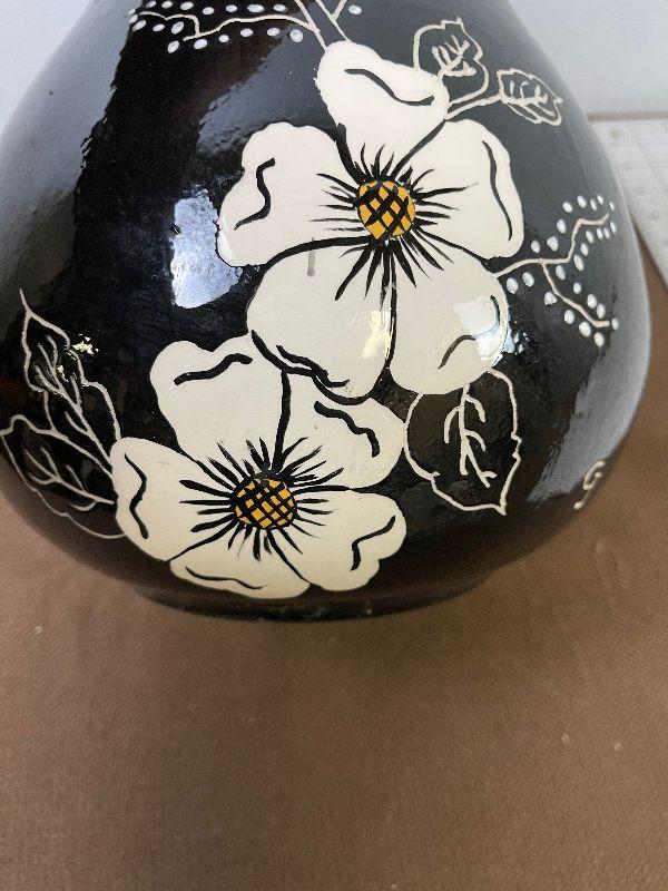 #292 Black Vase with White Flowers