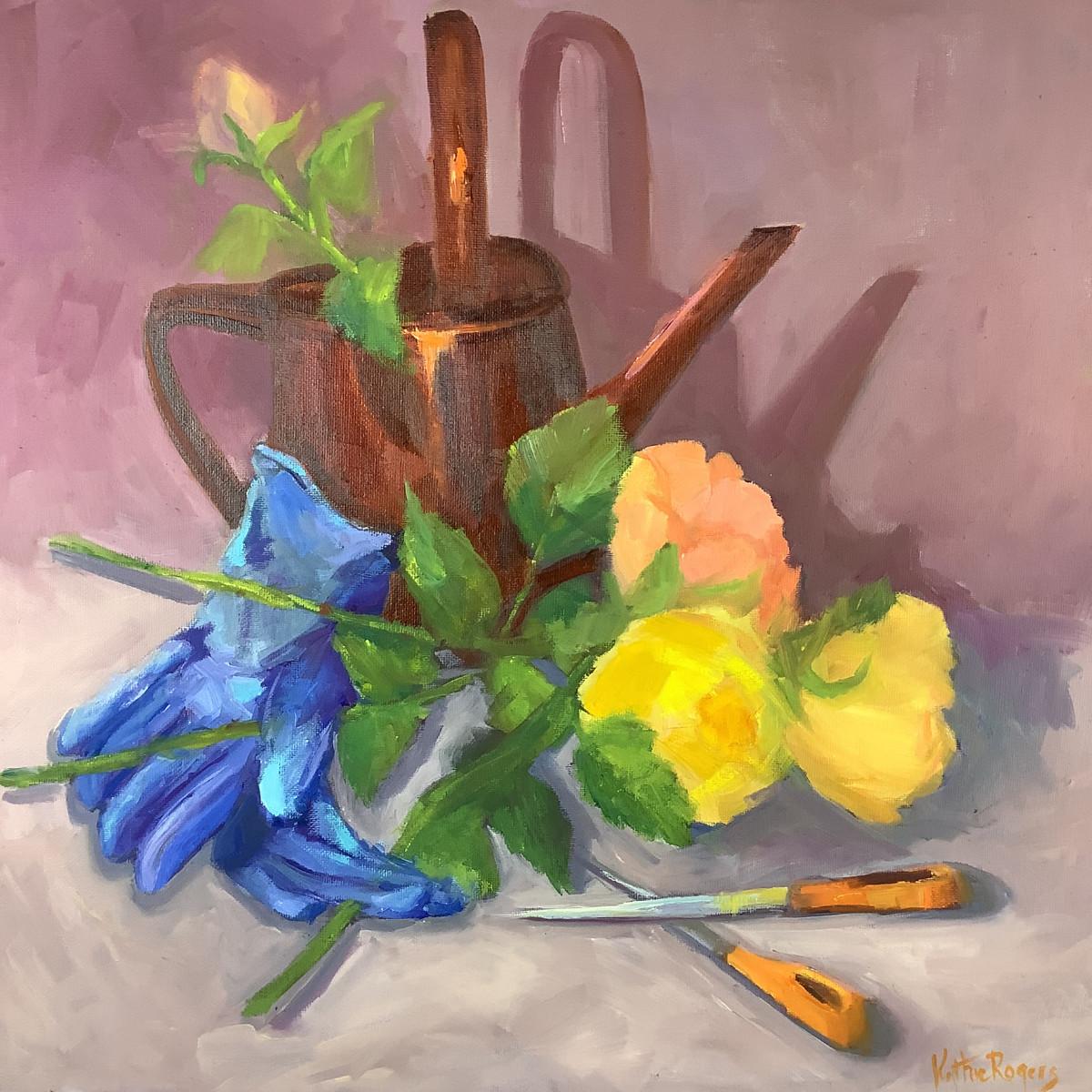 292 "Gardening Theme" Canvas Oil Painting By Kathie Rogers