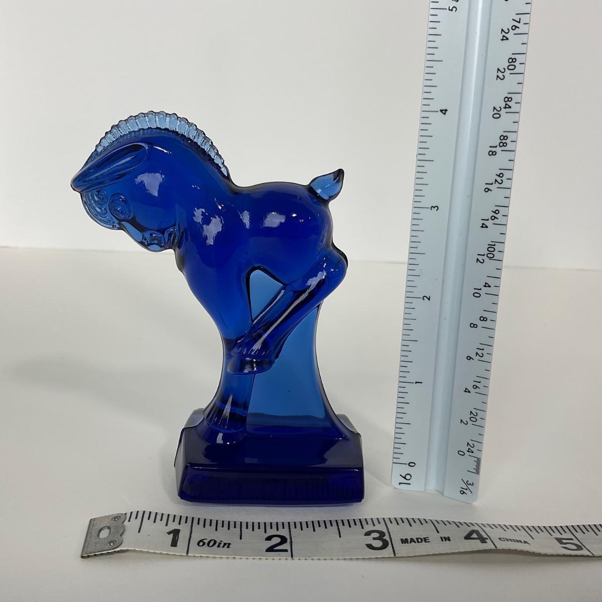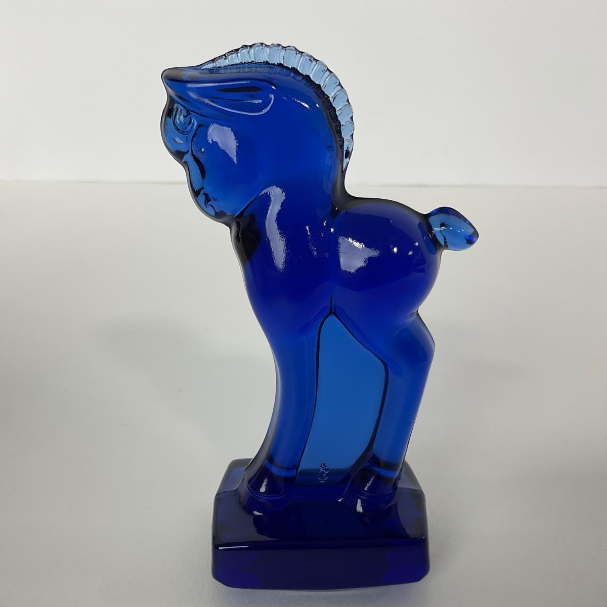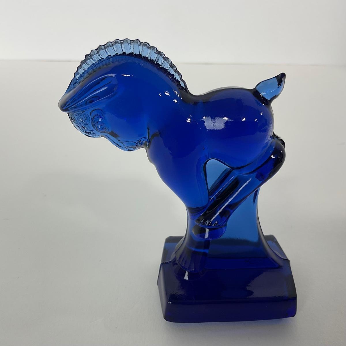 Three Heisey by Mosser blue colt pony horses. One standing one balking and one kicking all marked. This piece has no damage, and appears to be in great shape with no visable chips, cracks, or broken pieces. Please see photos for details and condition. Any condition statement is given as a courtesy to a client, is an opinion, and should not be treated as a statement of fact. Reference to condition written, oral or within a condition report shall not be regarded as a full account of condition and may not include all defects, alterations, or restorations. Absence of a condition report does not imply a lot is flawless or lacking imperfections or damage. Katherine’s Auction & Appraisal Service shall have no responsibility for any error or omission. Returns shall not be accepted on the basis of condition. ::: Shipping is available on this lot. If you require shipping you must let us know at the close of the auction. We will coordinate with you after the item has been won. Shipping fees will include insurance up to or exceeding the value of all items being mailed. If you have any questions regarding this lot please contact the auctioneer either via this website, by direct email or by phone. PICK UP TIMES and other important information can be found in the TERMS and DESCRIPTION of the auction. Please take a look for pertinent information. Thanks!