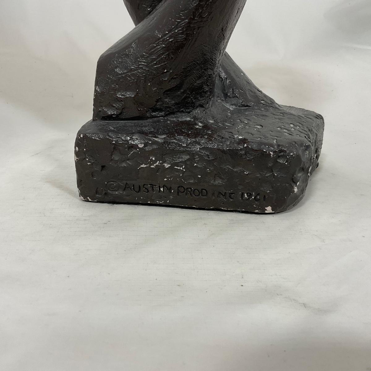 One vintage 1961 Austin Productions Inc Mid Century Modern “Hands” Sculpture. Please see photos for details and condition. ::: Shipping is available on this lot. If you require shipping you must let us know at the close of the auction. We will coordinate with you after the item has been won. Shipping fees will include insurance up to or exceeding the value of all items being mailed. If you have any questions regarding this lot please contact the auctioneer either via this website, by direct email or by phone. PICK UP TIMES and other important information can be found in the TERMS and DESCRIPTION of the auction. Please take a look for pertinent information. Thanks!