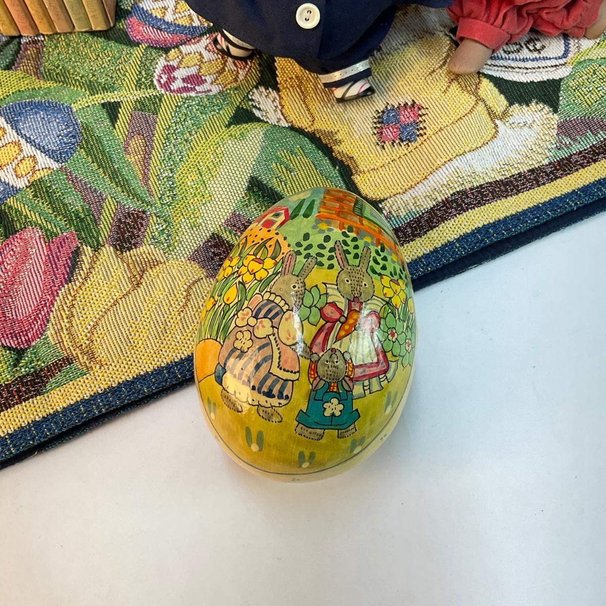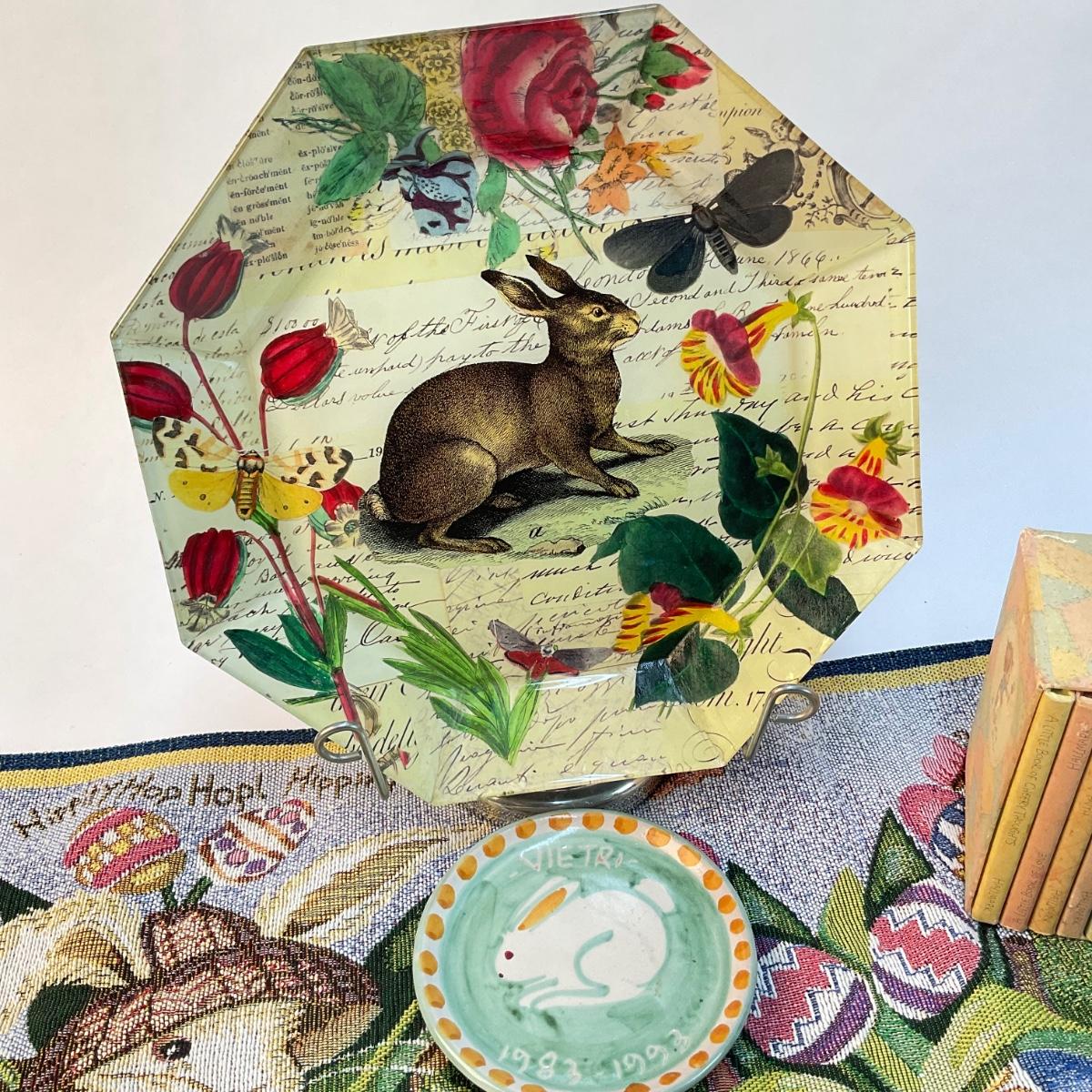 293 Table runner Easter theme with Pink Ceramic Pitcher