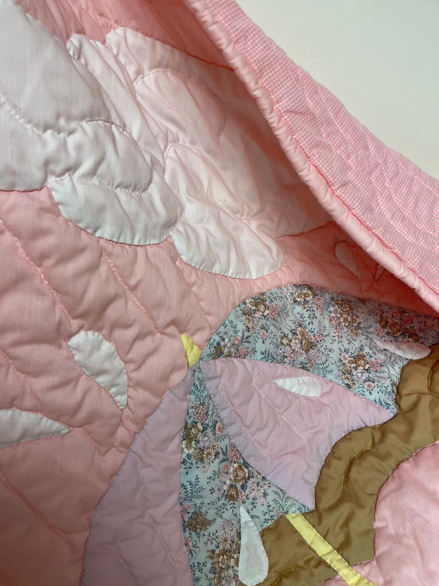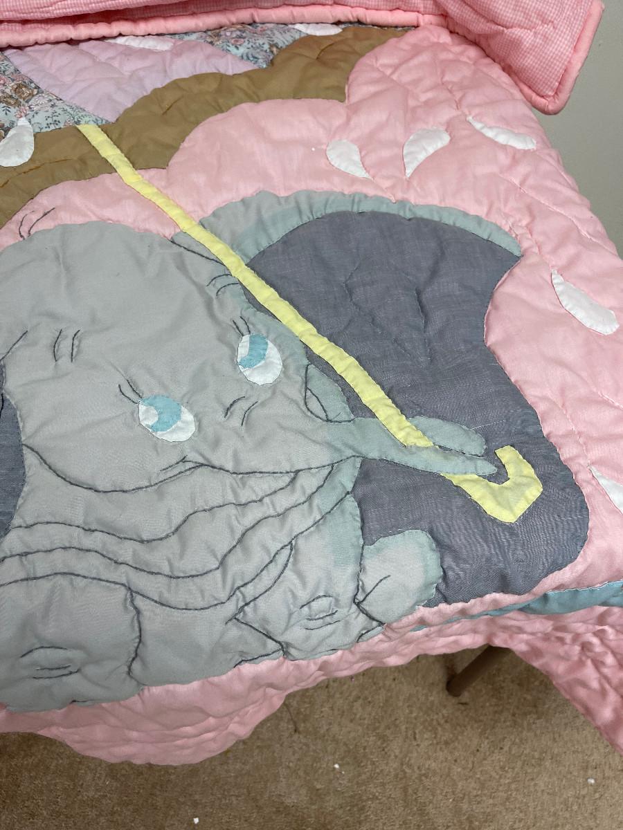 #293 B Pink Hand Made Baby Quilt Elephant Umbrella