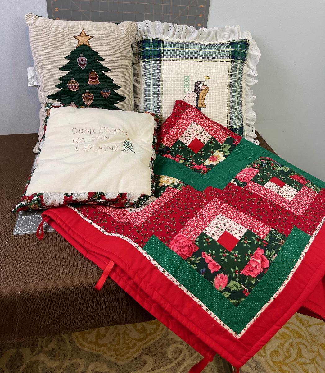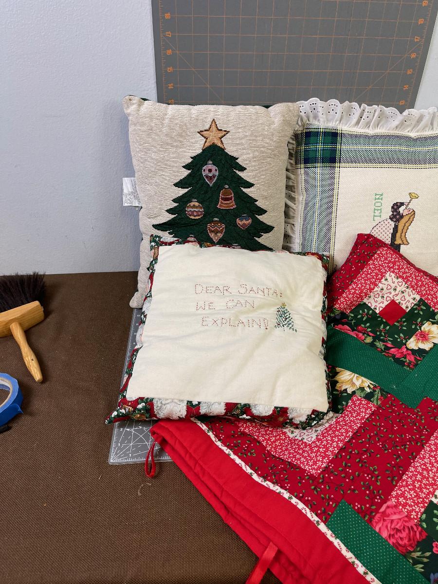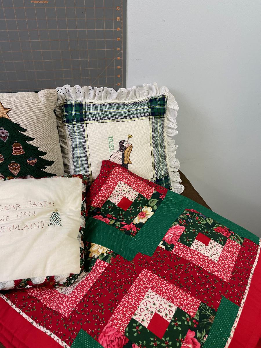 #293 CHRISTMAS Quilted Wall Hanging and pillows.