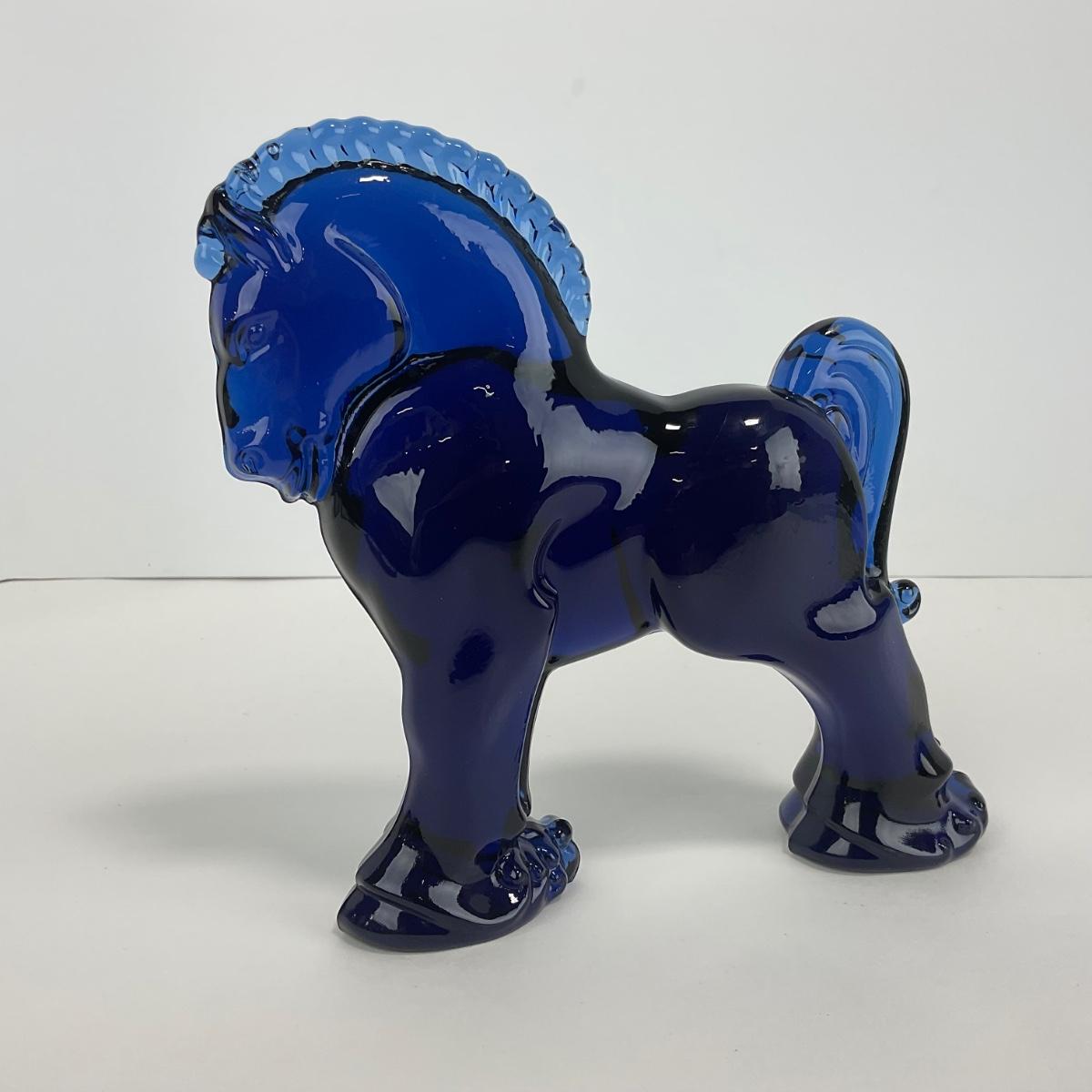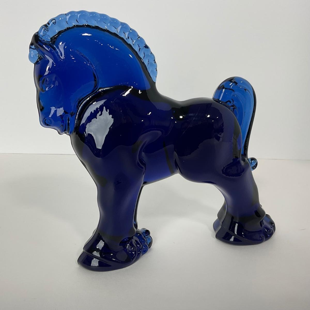 One Longaberger Heisey Mosser cobalt blue marked Clydesdale horse figure. 7 1/2 inches wide by 7 1/4 inches tall. This piece has no damage, and appears to be in great shape with no visable chips, cracks, or broken pieces. Please see photos for details and condition. Any condition statement is given as a courtesy to a client, is an opinion, and should not be treated as a statement of fact. Reference to condition written, oral or within a condition report shall not be regarded as a full account of condition and may not include all defects, alterations, or restorations. Absence of a condition report does not imply a lot is flawless or lacking imperfections or damage. Katherine’s Auction & Appraisal Service shall have no responsibility for any error or omission. Returns shall not be accepted on the basis of condition. ::: Shipping is available on this lot. If you require shipping you must let us know at the close of the auction. We will coordinate with you after the item has been won. Shipping fees will include insurance up to or exceeding the value of all items being mailed. If you have any questions regarding this lot please contact the auctioneer either via this website, by direct email or by phone. PICK UP TIMES and other important information can be found in the TERMS and DESCRIPTION of the auction. Please take a look for pertinent information. Thanks!