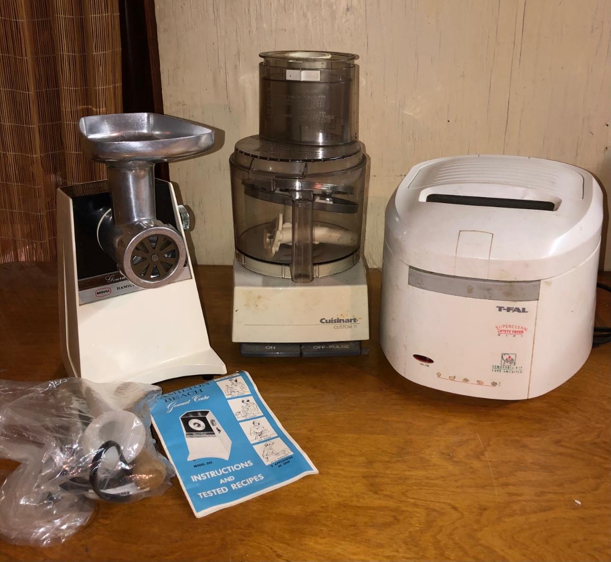 LOT293M: Vintage Hamilton Beach Gourmet Center Model 223, Cuisinart Custom 11 Food Processor Model DLC-8M, & T-Fal 'Superclean Safety Fryer'