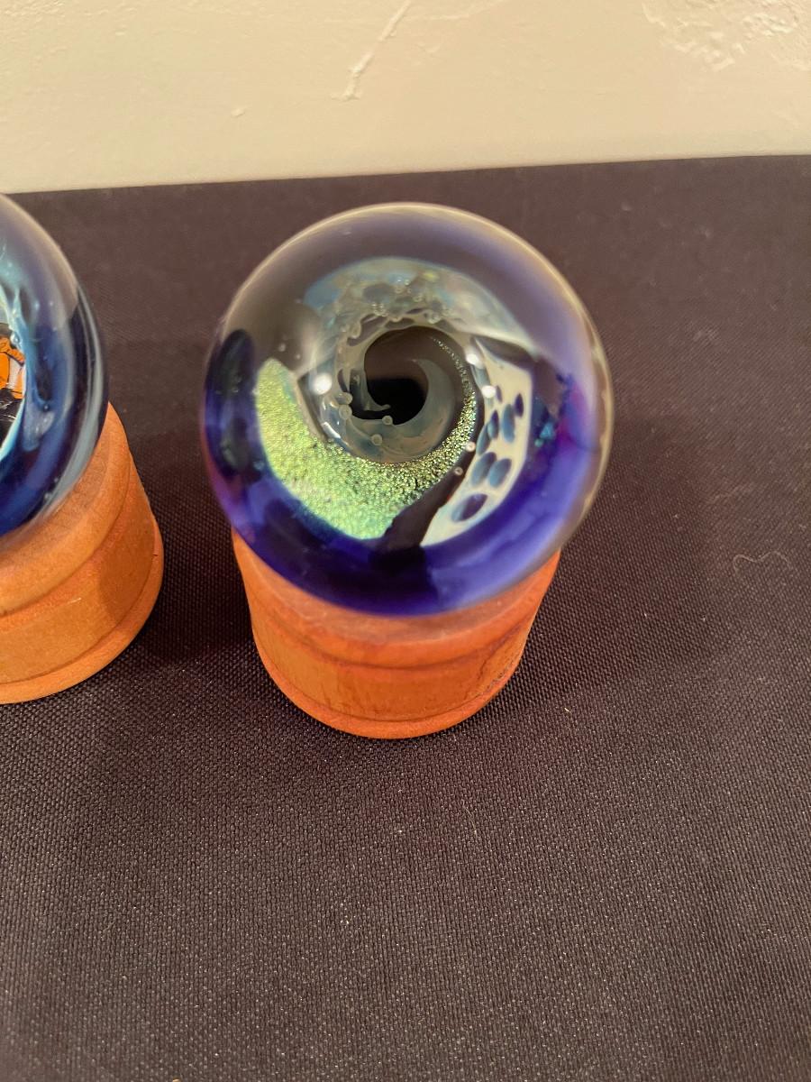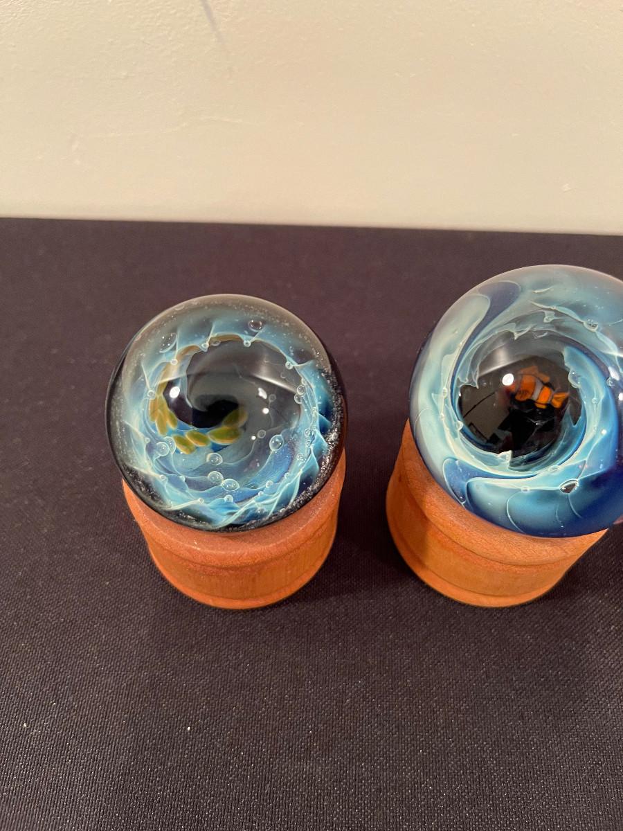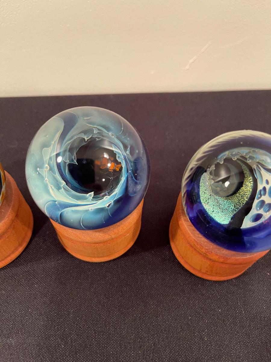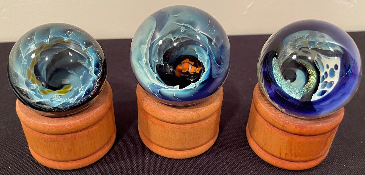 #294 ( 3) Hand Blown Glass Ocean Kaleidoscope Balls