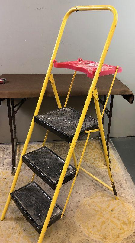 #295 Yellow 3 step ladder with a work Platform