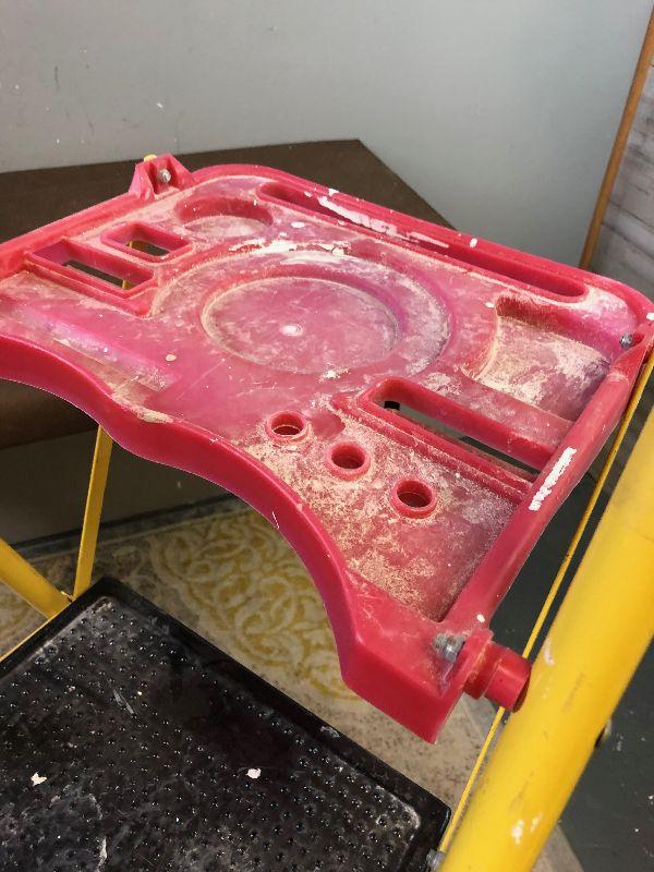 Folds up flat for storage too good shape, comes with paint splatter.