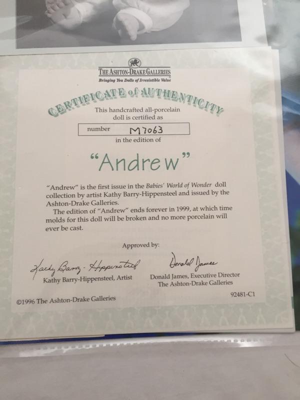 Babies World of Wonder Collection Dolls by Ashton-Drake includes Andrew with firefly, Alex with glow worm, Jason with turtle. All with COA.