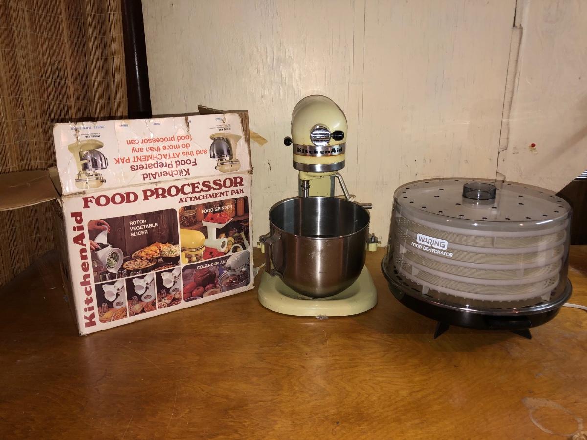 LOT295M: Waring Food Dehydrator, KitchenAid Stand Mixer Model K5SS, KitchenAid Food Processor Attachment Pak & More