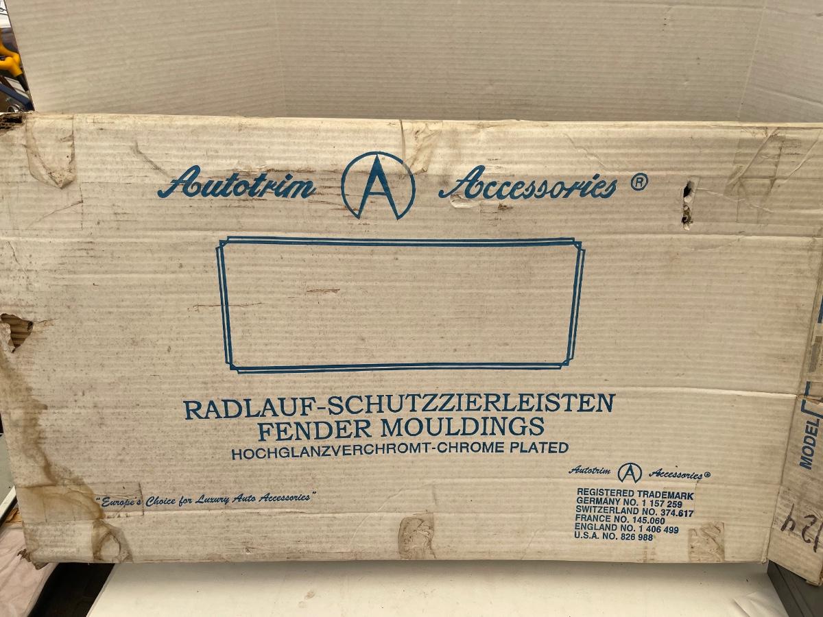Qty (4) Auto Fender Mouldings-Make & Model Unknown. Opened box, fender mounding wrapped in plastic-like new.
