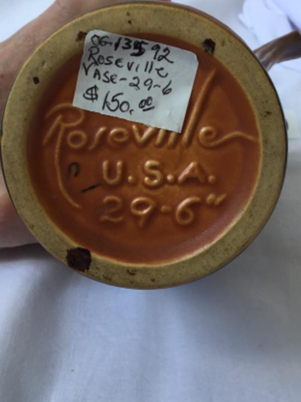 29““6 vintage Roseville pottery vase Lot 1860
