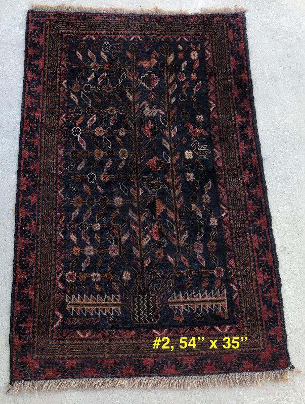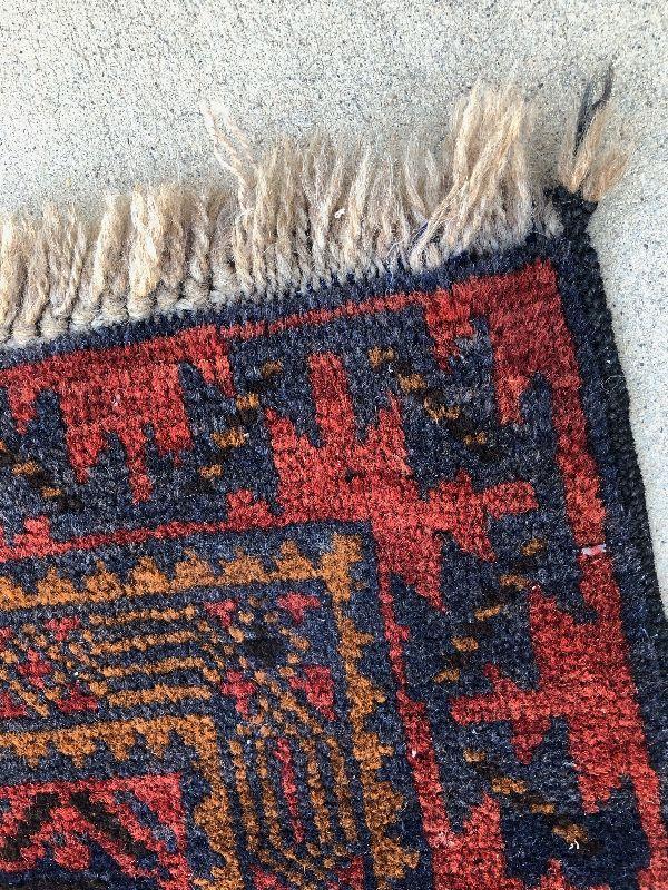 Vintage Afghan rug measures 54x35 Afghan tribal rug some moth damage on edge and corner see photos.