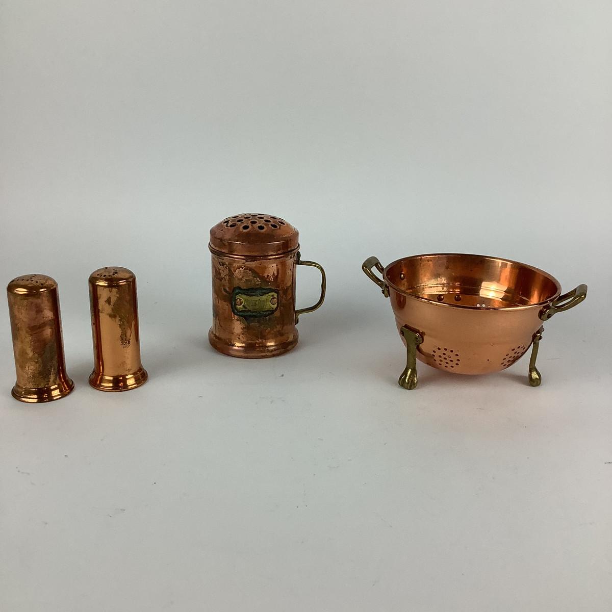 297 Copper Bowl, Parmasean Shaker and Salt & Pepper Shakers Lot
