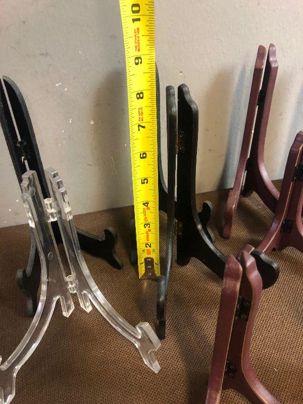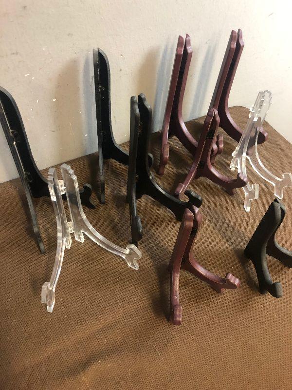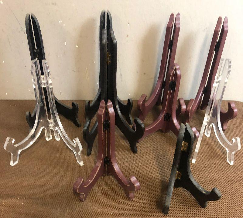 #297 Lot B is Group of Wood and plastic Plate Stands
