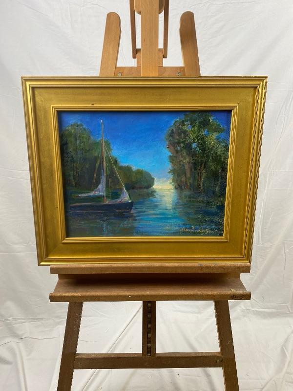 This is an Original Oil Painting of Sailboat by Moonlight by Jean Ranney Smith “˜03,