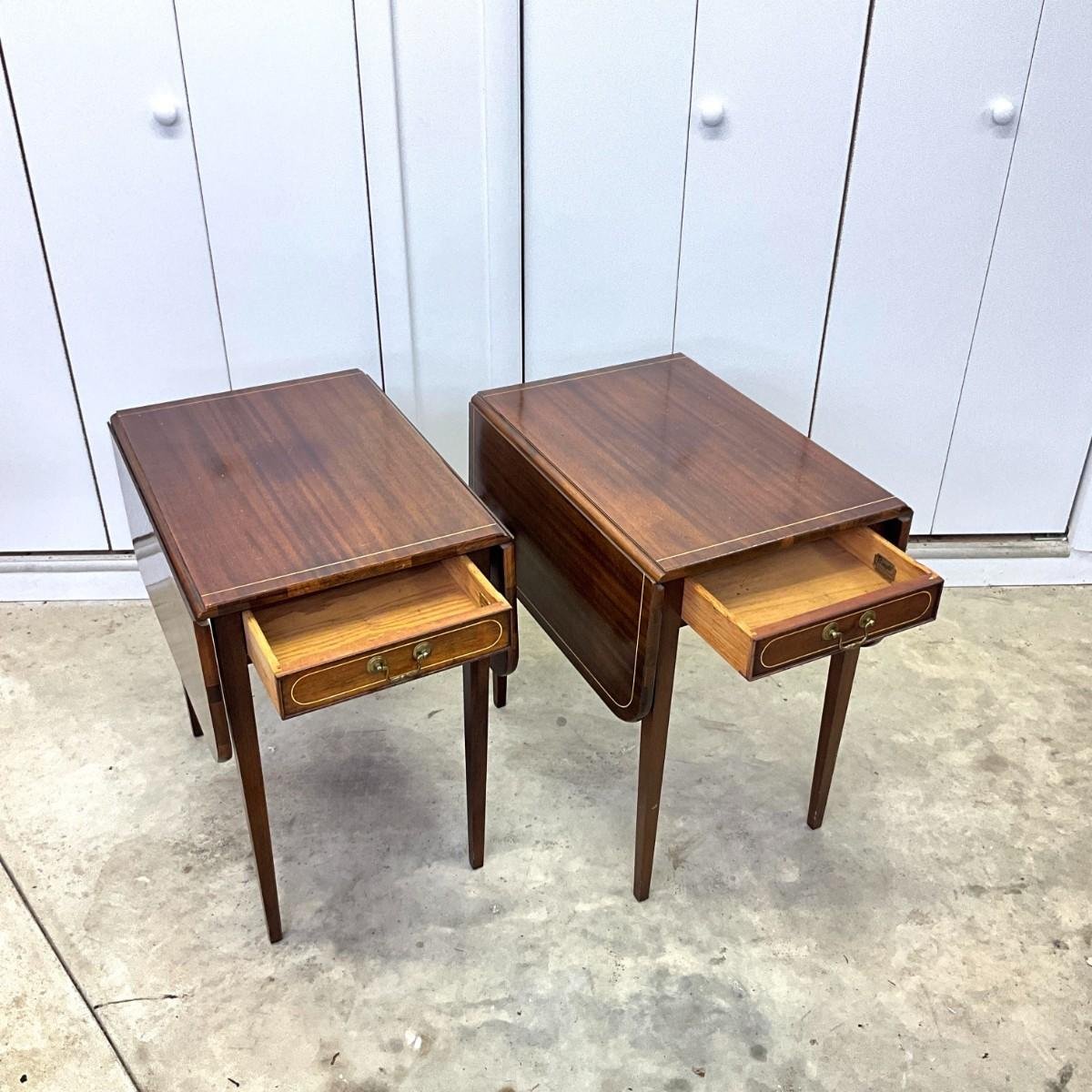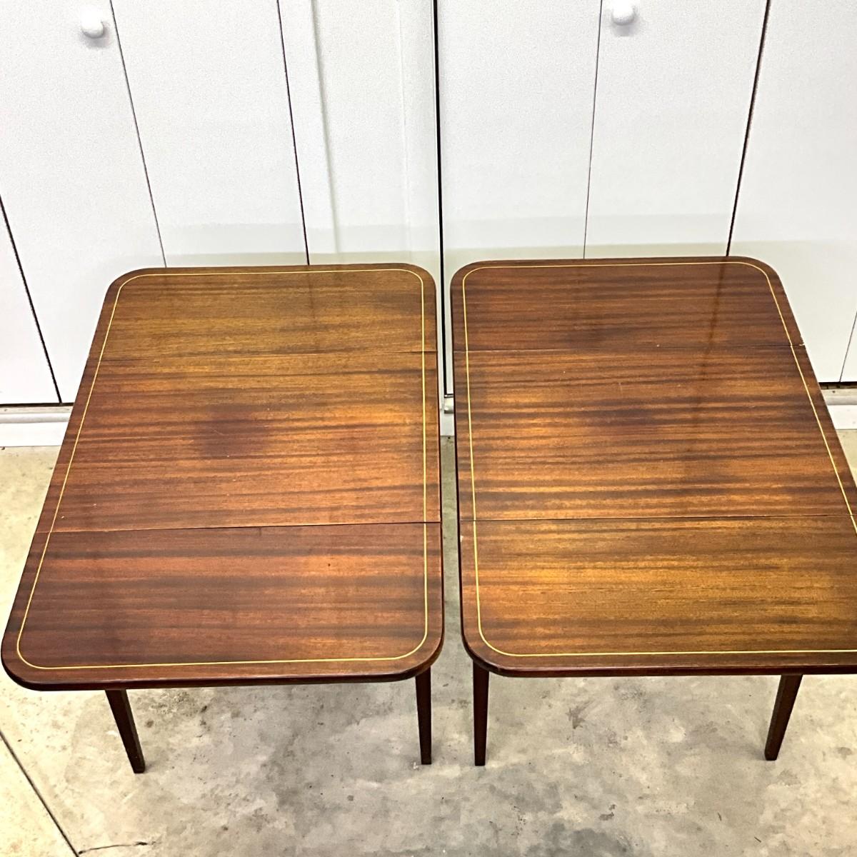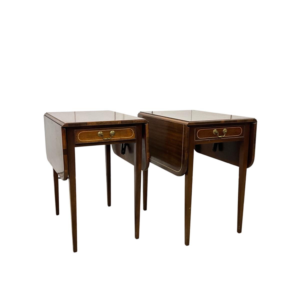 297 Pair of Mahogany Brandt Leaf Side Tables with Inlay Trim