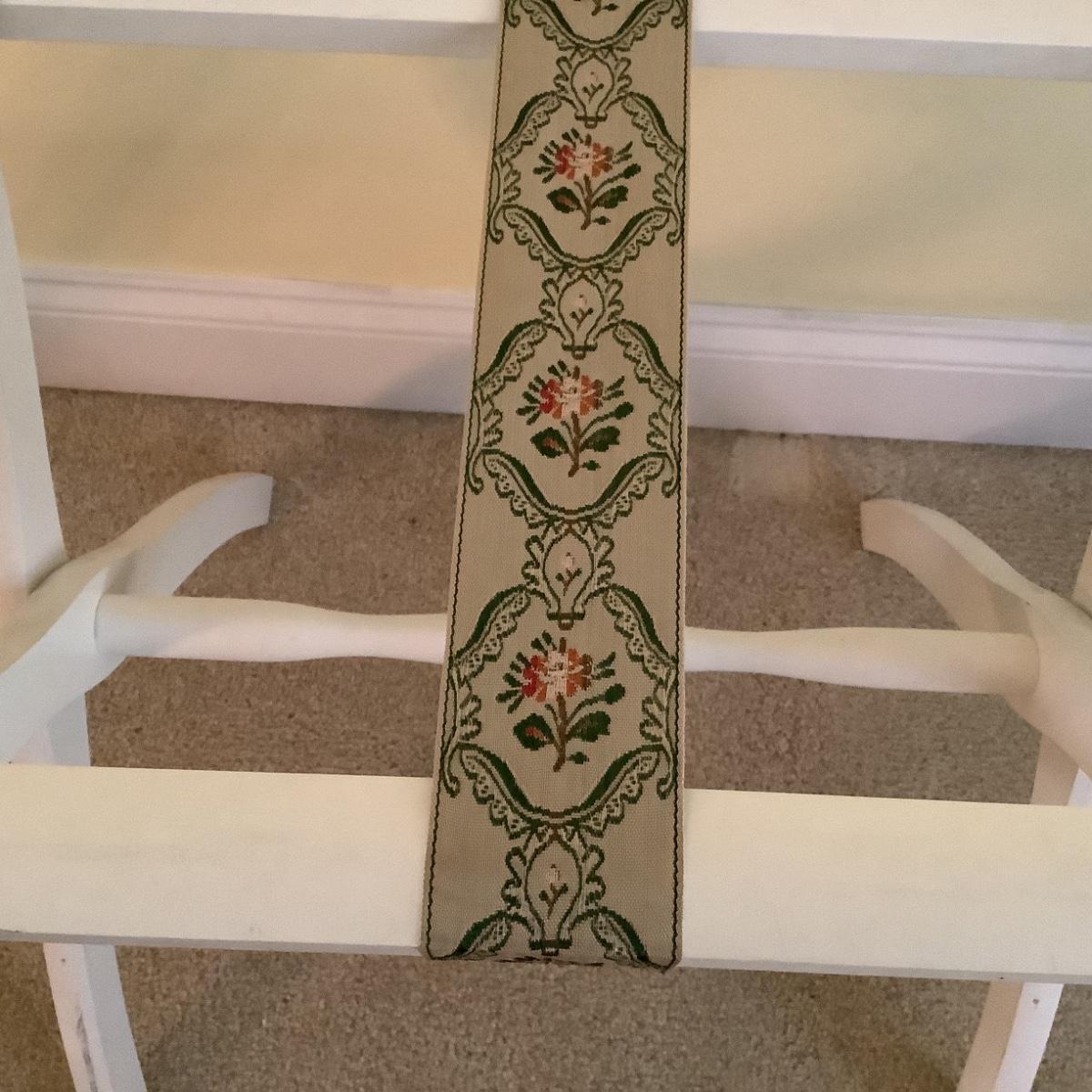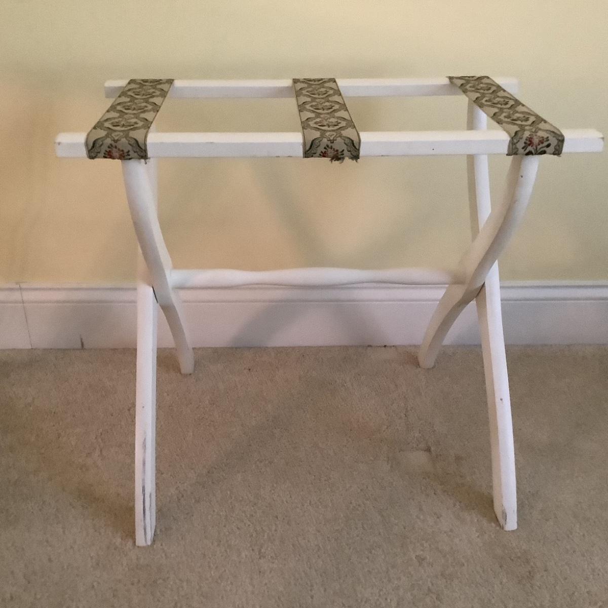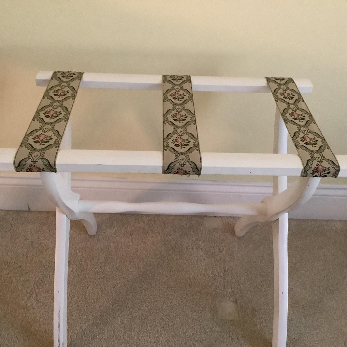 297 White Painted Luggage Rack with Decorative Floral Straps