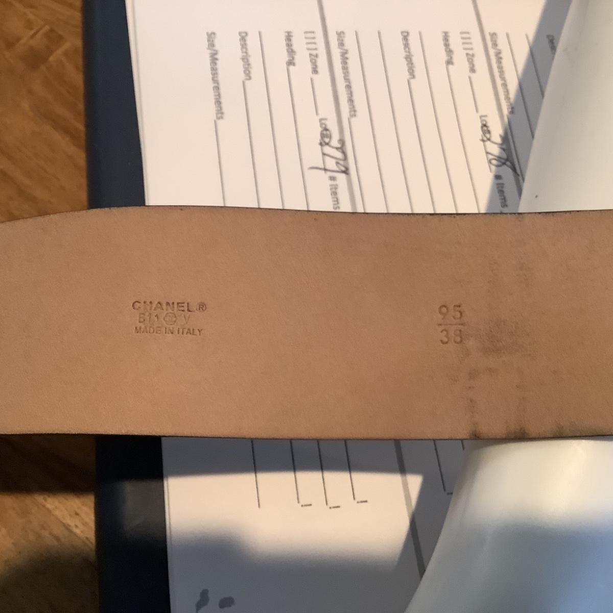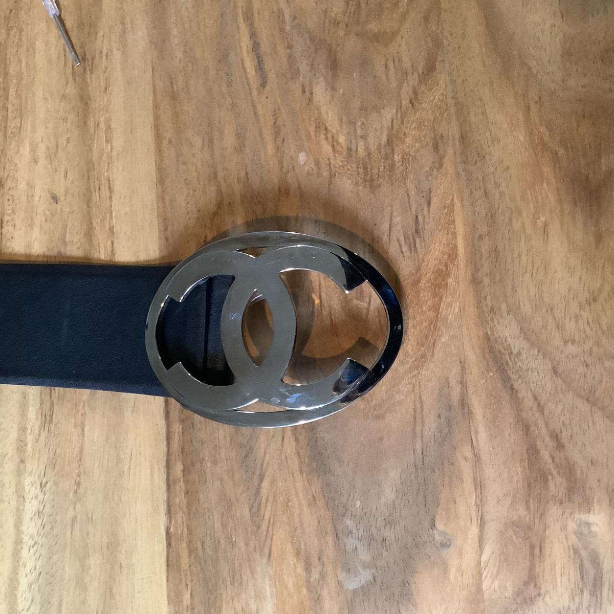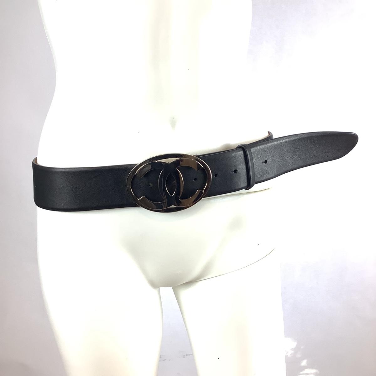 Authentic Chanel Black lambskin belt with silver tone interlocking C buckle