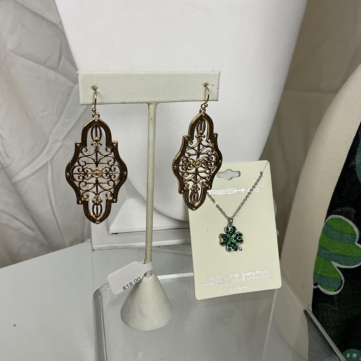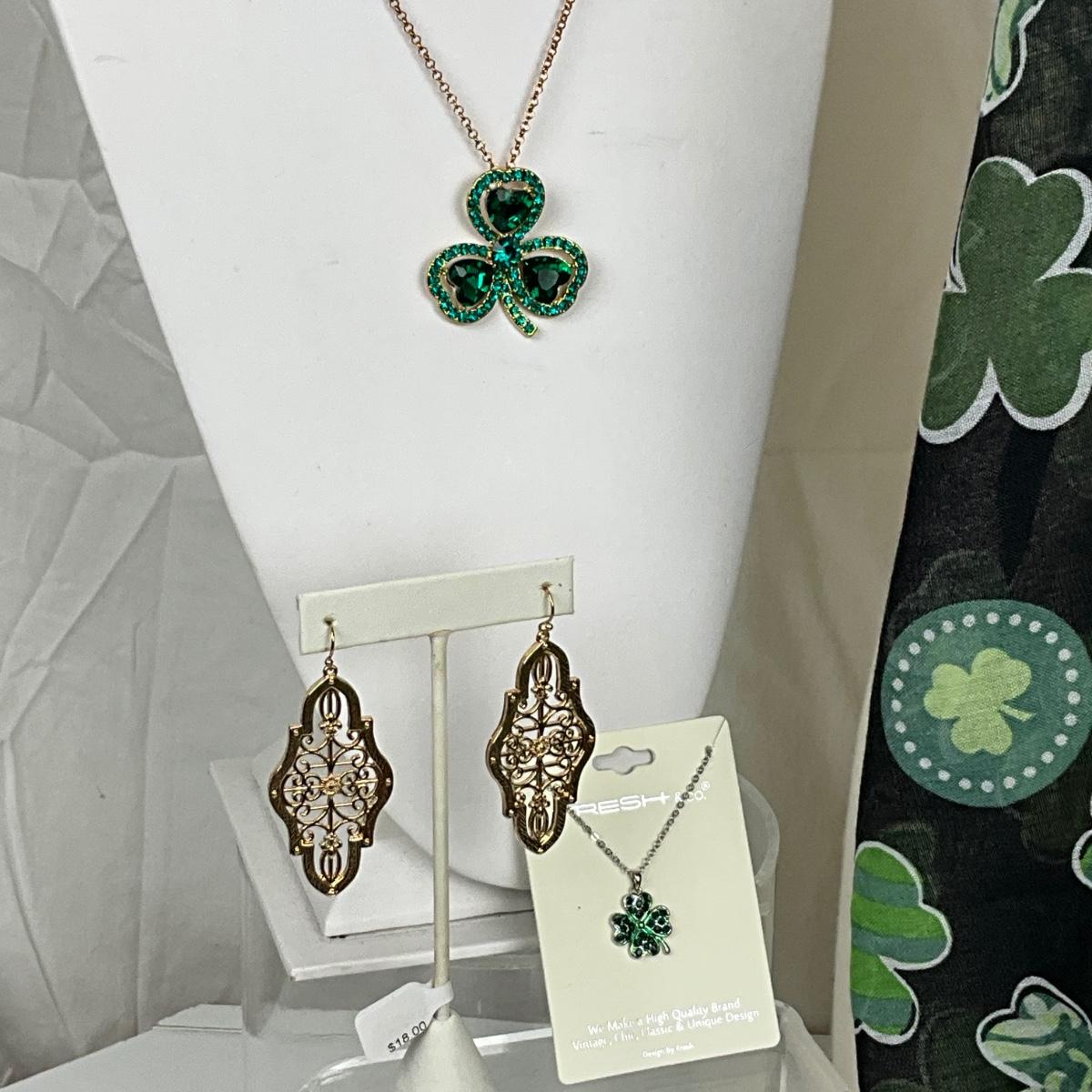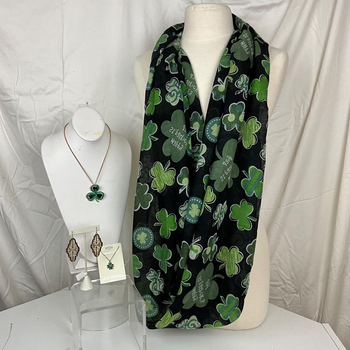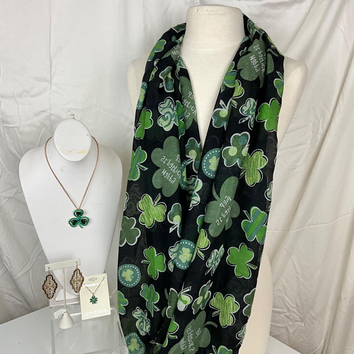 298 Luck of the Irish Lot, Two Shamrock Necklaces, Earrings, Shawl,