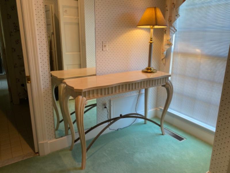 Vintage Decorative Console Table with lamp the console table measures 52” wide x 19” deep x 34.5” tall