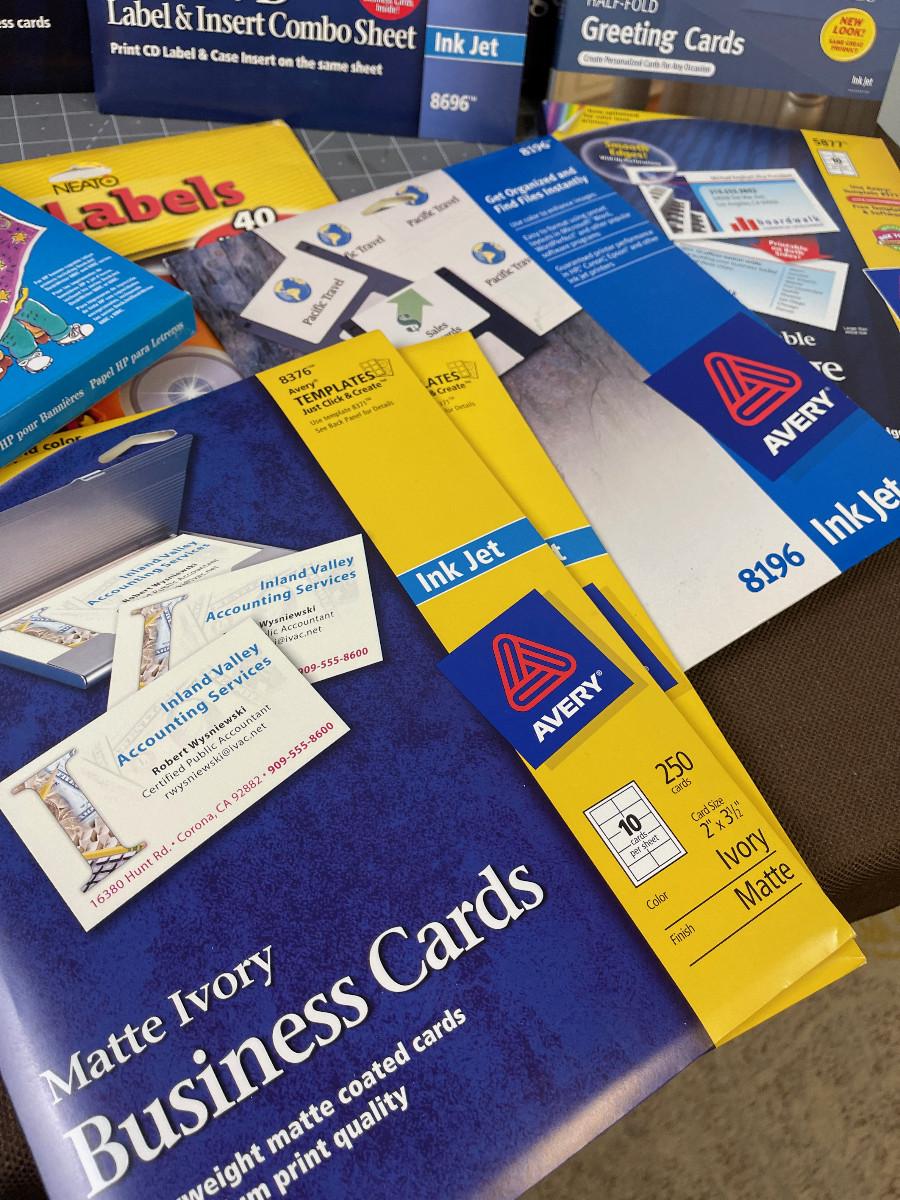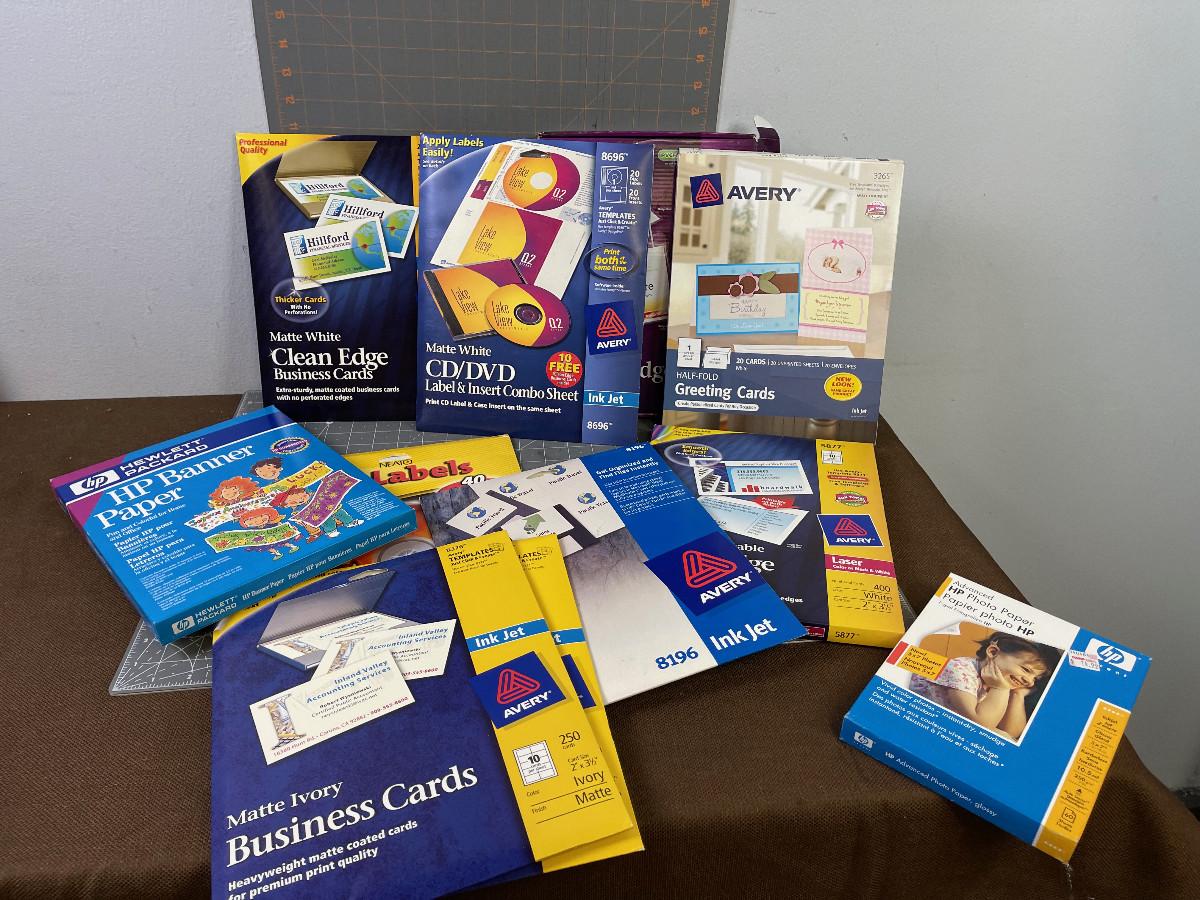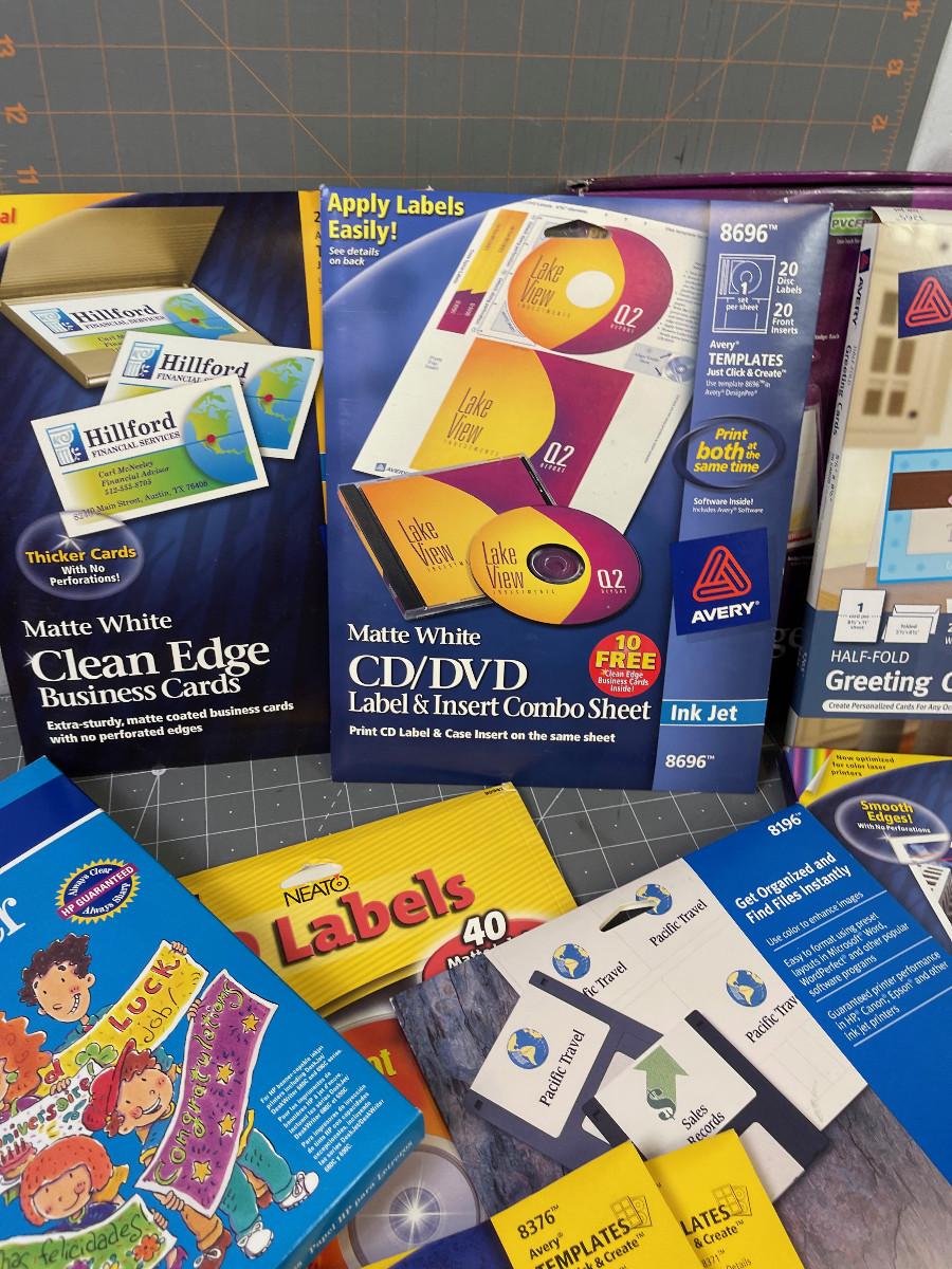 #299 Misc. Pile of Photo Paper, Cards, DVD Label Inserts Business Cards.