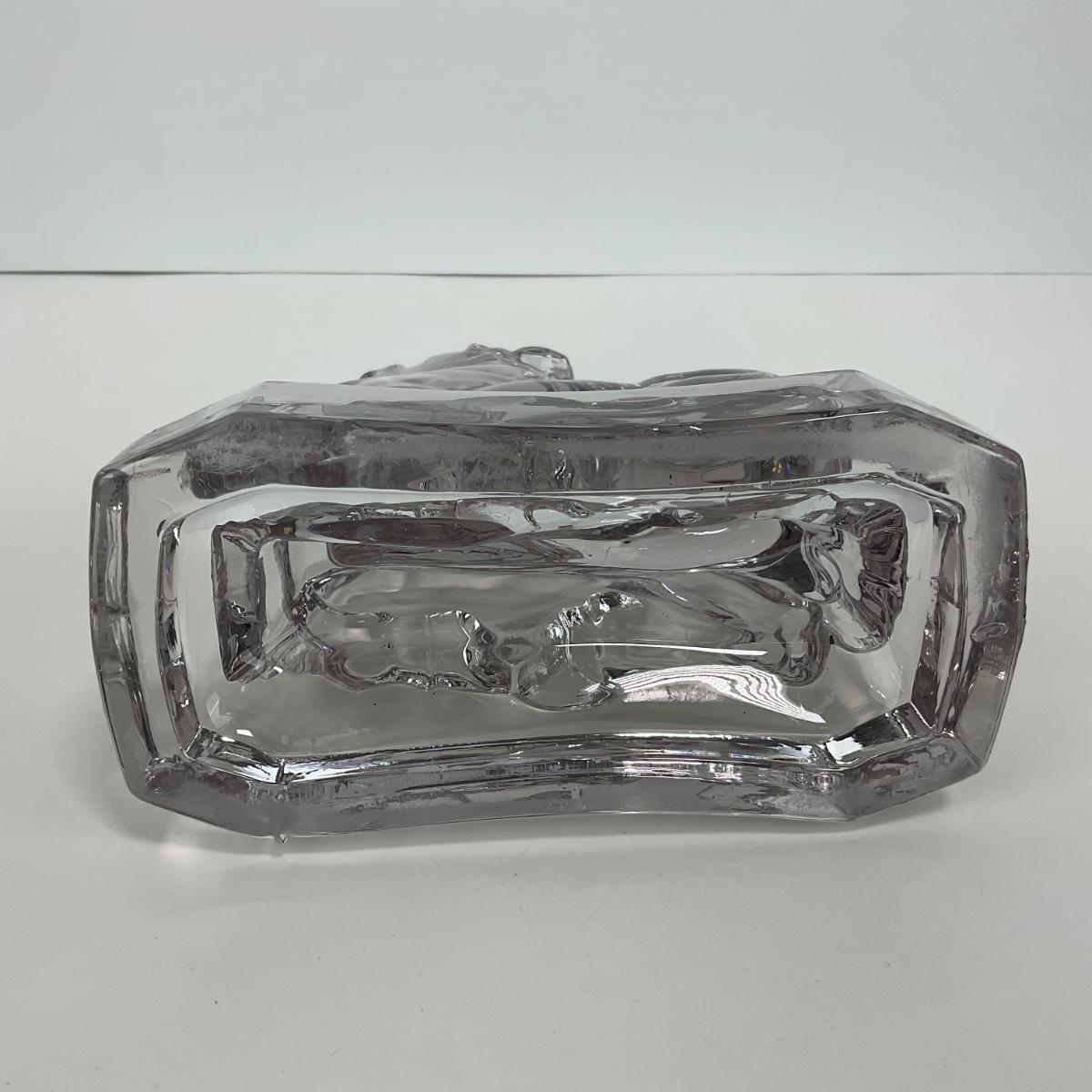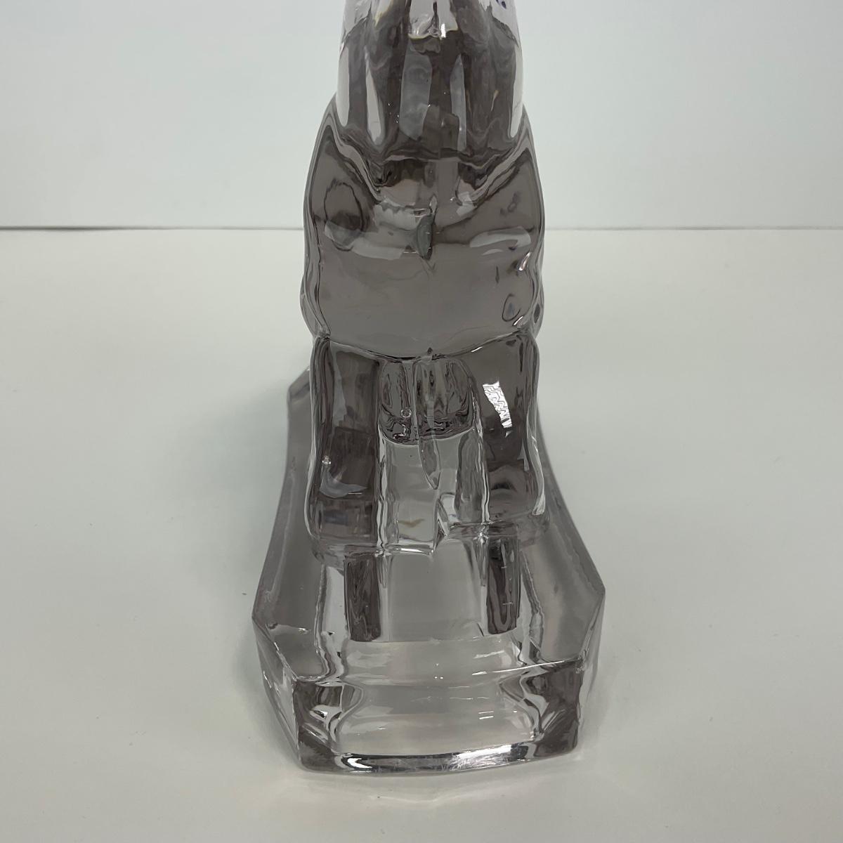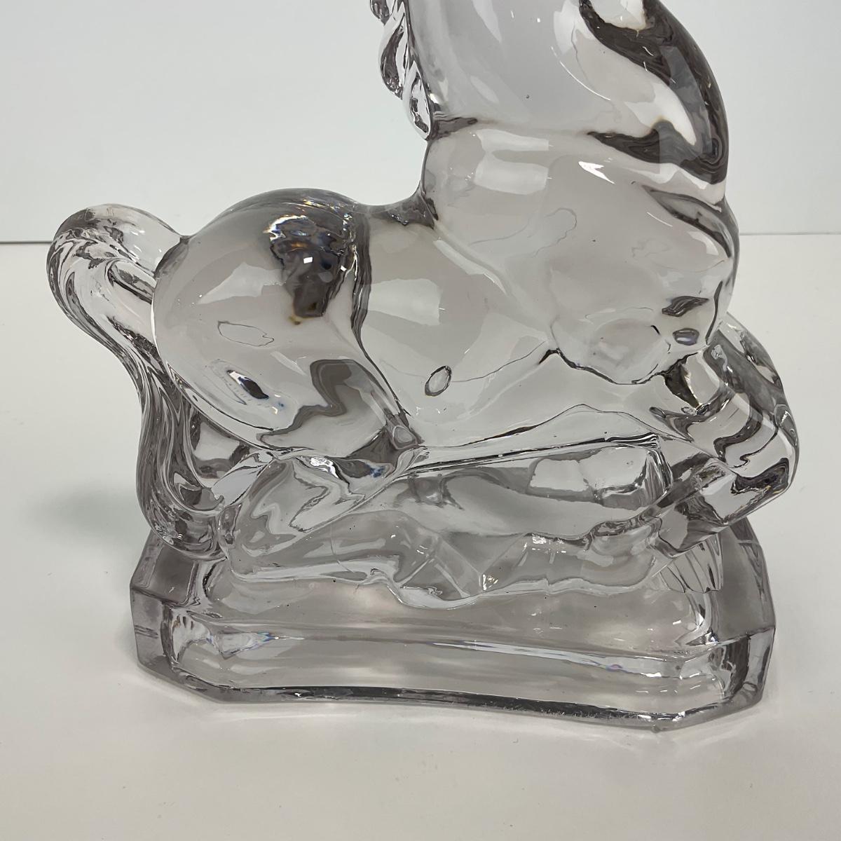 One clear glass New Martinsville Horse bookend. This piece does have some scuffs, scratches, marks, or slight damage, but otherwise appears to be in great shape. Please see photos for details and condition. Any condition statement is given as a courtesy to a client, is an opinion, and should not be treated as a statement of fact. Reference to condition written, oral or within a condition report shall not be regarded as a full account of condition and may not include all defects, alterations, or restorations. Absence of a condition report does not imply a lot is flawless or lacking imperfections or damage. Katherine’s Auction & Appraisal Service shall have no responsibility for any error or omission. Returns shall not be accepted on the basis of condition. ::: Shipping is available on this lot. If you require shipping you must let us know at the close of the auction. We will coordinate with you after the item has been won. Shipping fees will include insurance up to or exceeding the value of all items being mailed. If you have any questions regarding this lot please contact the auctioneer either via this website, by direct email or by phone. PICK UP TIMES and other important information can be found in the TERMS and DESCRIPTION of the auction. Please take a look for pertinent information. Thanks!