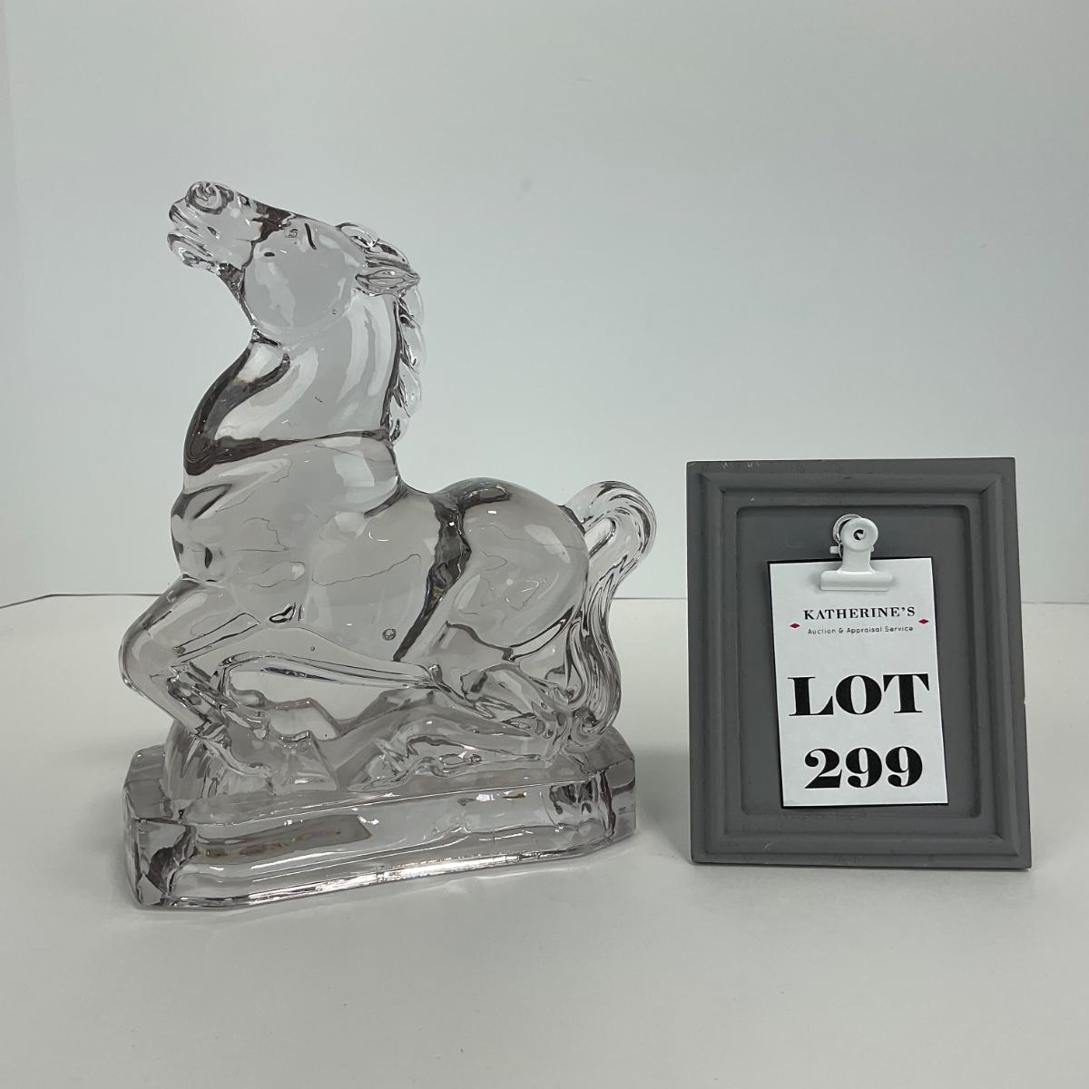-299- NEW MARTINSVILLE | Clear Glass Horse Bookend